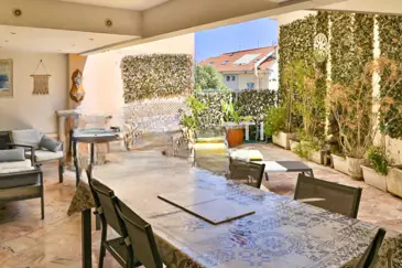 Зоны комфорта с изысканной ванной комнатой (ванна + душ), двумя современными душевыми и четырьмя туалетами, два из которых раздельные. Терраса, настоящая средиземноморская жемчужина: это дополнительное жилое пространство площадью 50 м² приглашает к отдыху и совместным моментам. Здесь можно насладиться завтраком на солнце, аперитивом в кругу семьи или друзей, или вечерком под звездами, окружённые атмосферой Канн.