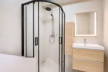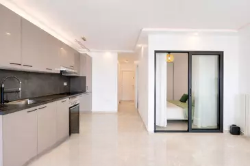 Включает светлую гостиную с полностью оборудованной открытой кухней, спальню с зоной для отдыха, ванную комнату, отдельный туалет и гардеробную.