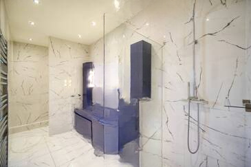 Ночная зона включает три большие спальни, каждая из которых имеет собственную ванную комнату с туалетом и большие гардеробы, обеспечивая максимальный комфорт.
