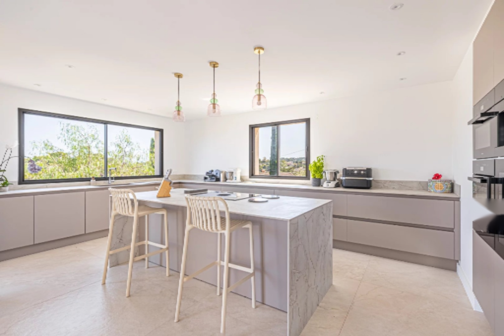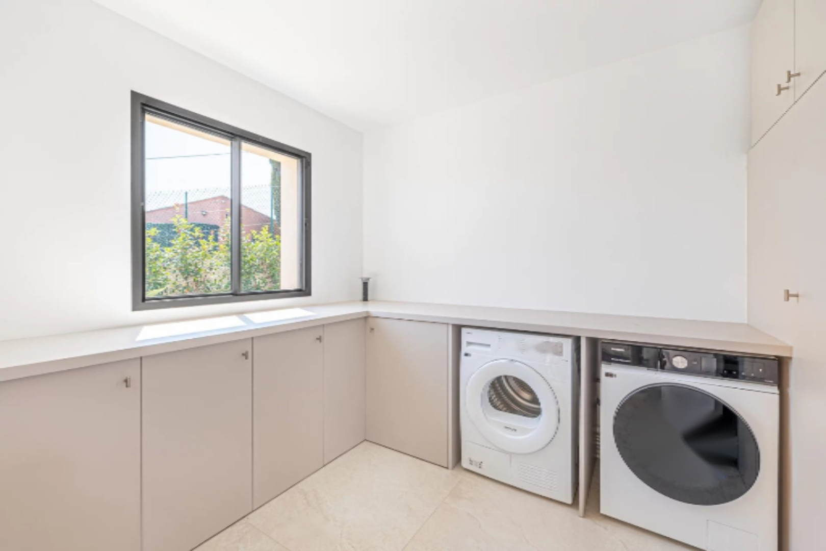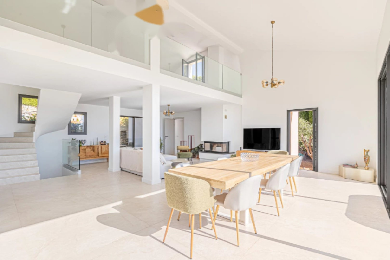 Построенная в 1991 году и полностью обновленная, эта вилла площадью 325 м² с пристройкой в 50 м² отличается щедрыми объемами и оптимизированной внутренней организацией. Каждый уголок спроектирован для удовлетворения потребностей современной семьи. Основное жилье включает пять спален, каждая с собственной ванной или душевой комнатой, включая две настоящие родительские суиты с отдельными гардеробными.