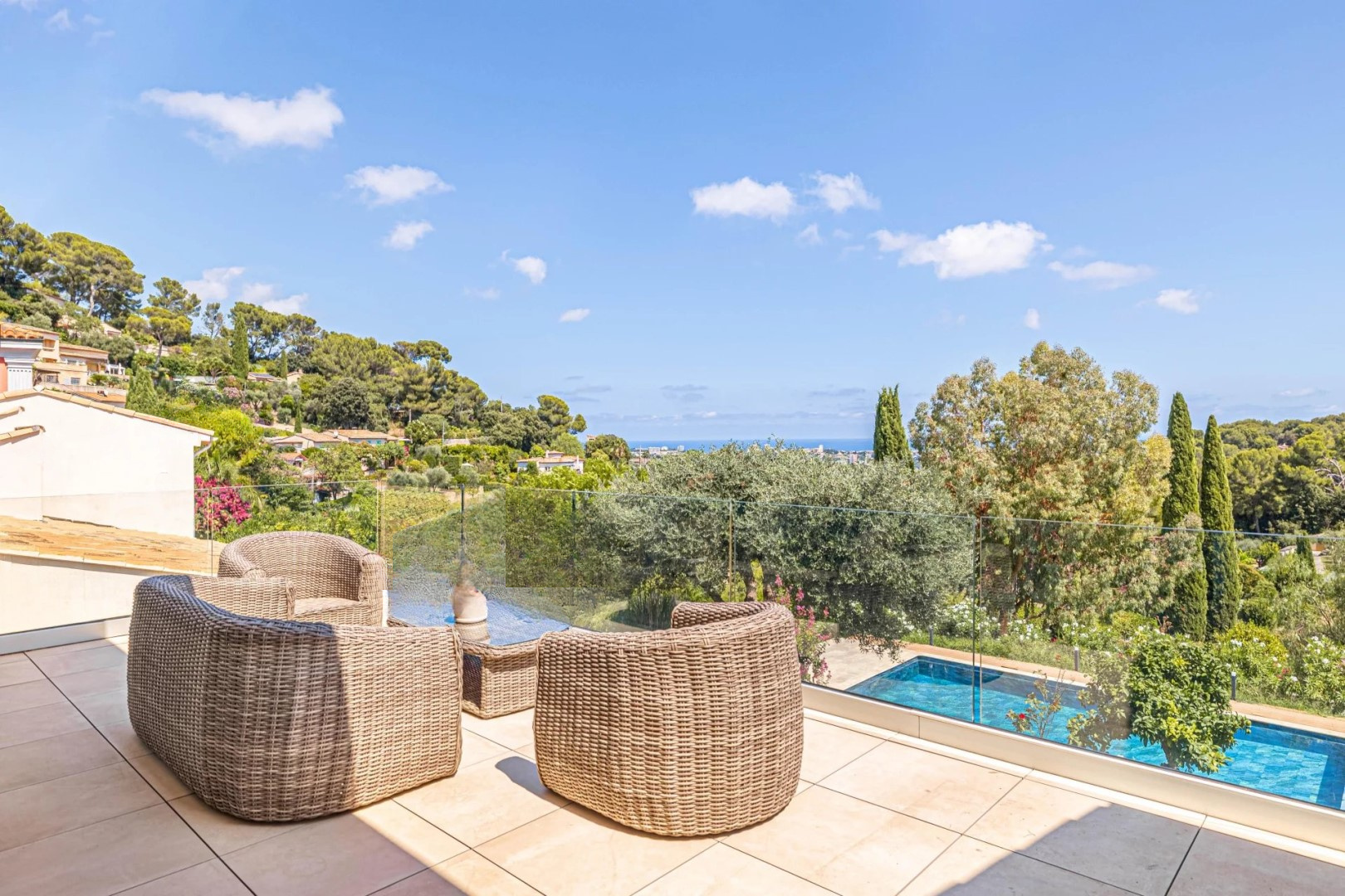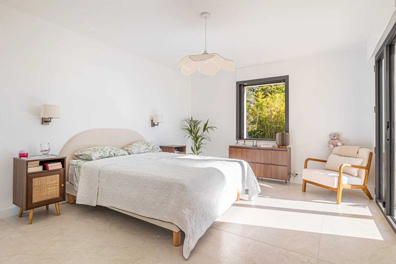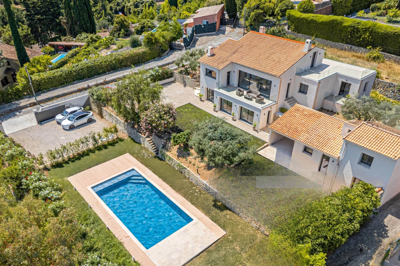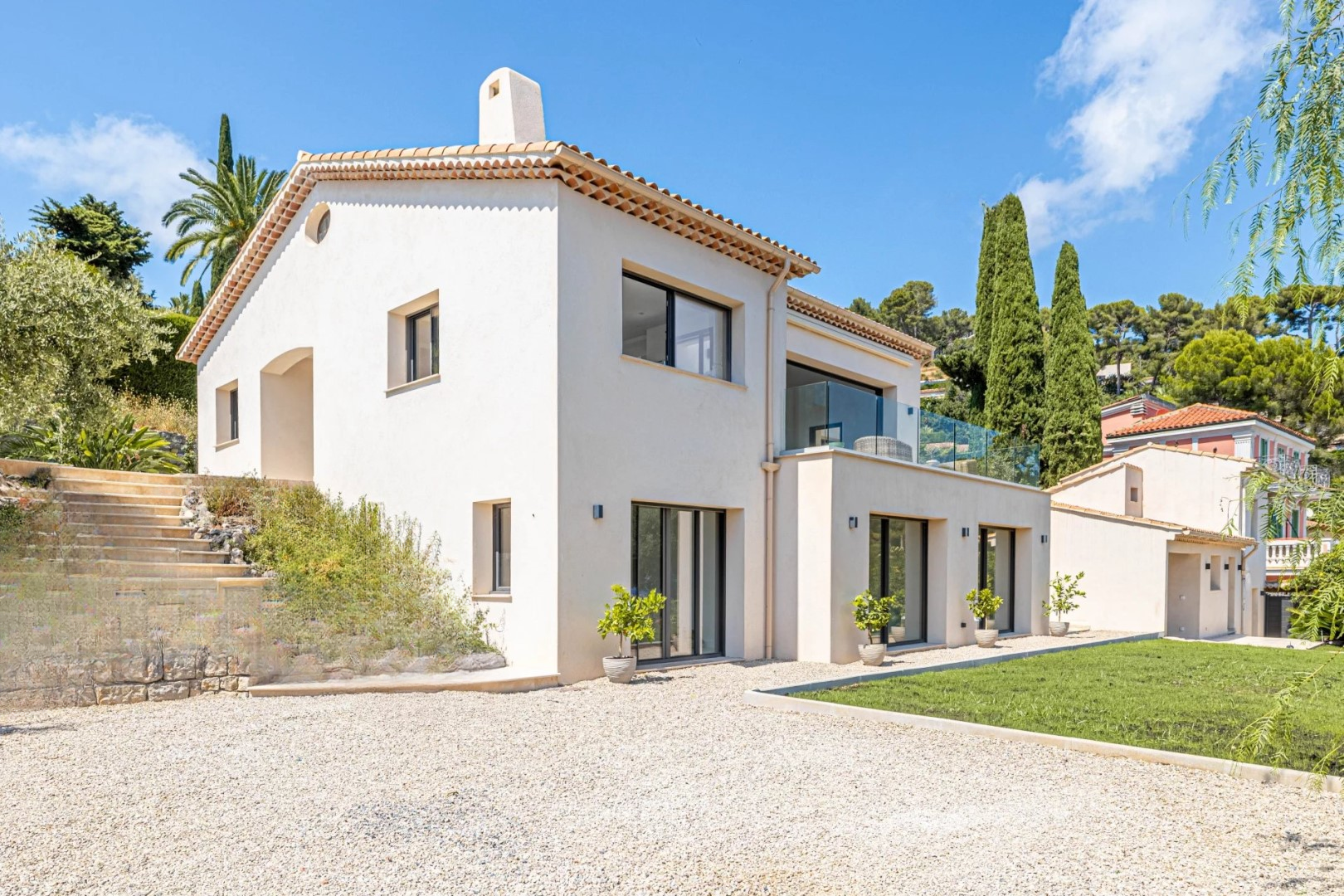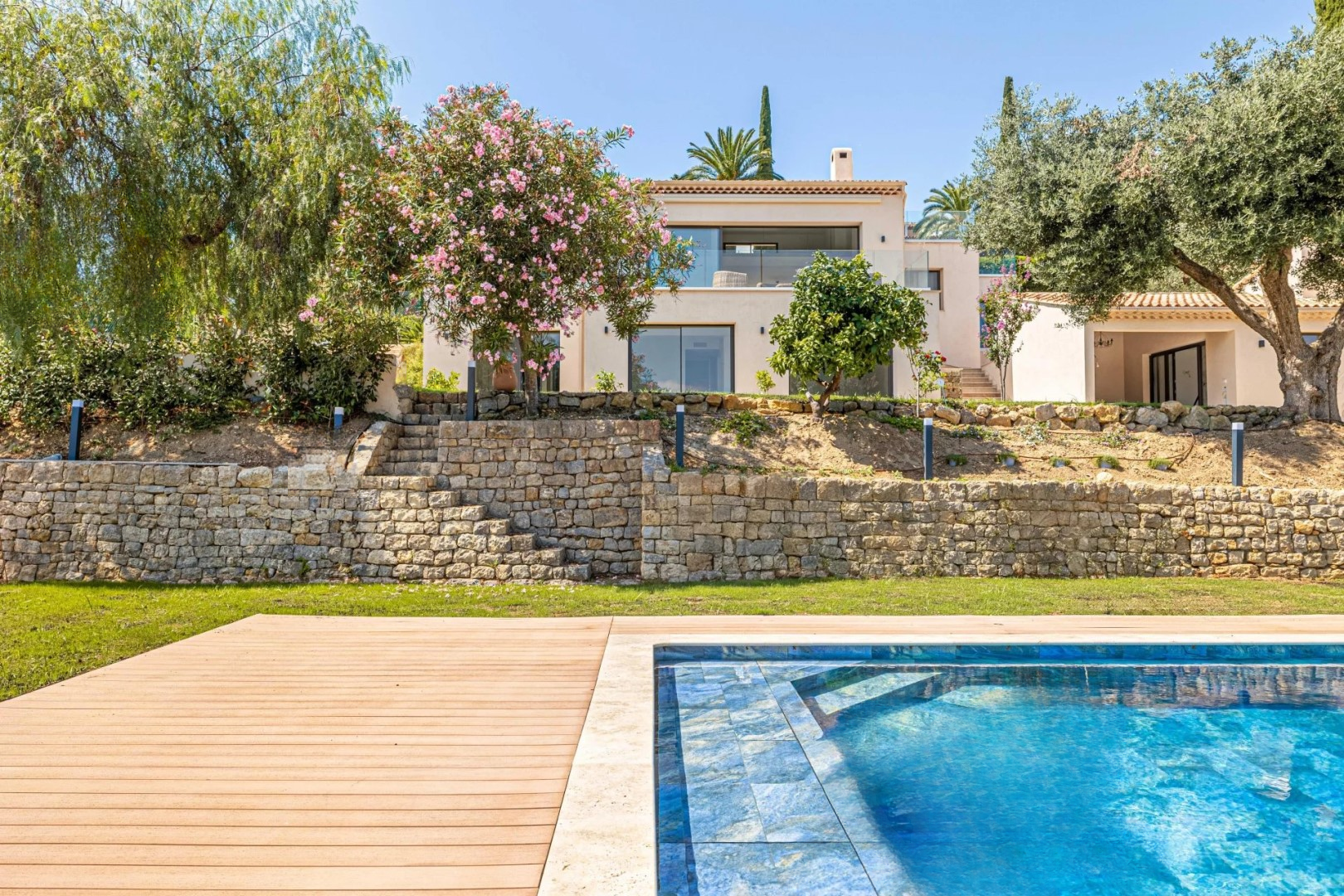 Построенная в 1991 году и полностью обновлённая, эта вилла площадью 325 м² с дополнительным флигелем в 50 м² демонстрирует щедрые размеры и оптимизированную внутреннюю планировку. Каждый участок был спроектирован для удовлетворения всех нужд современной семьи. Главный дом включает пять спален, каждая с собственной ванной комнатой или душевой, включая две настоящих родительских люкс-спальни с гардеробными.