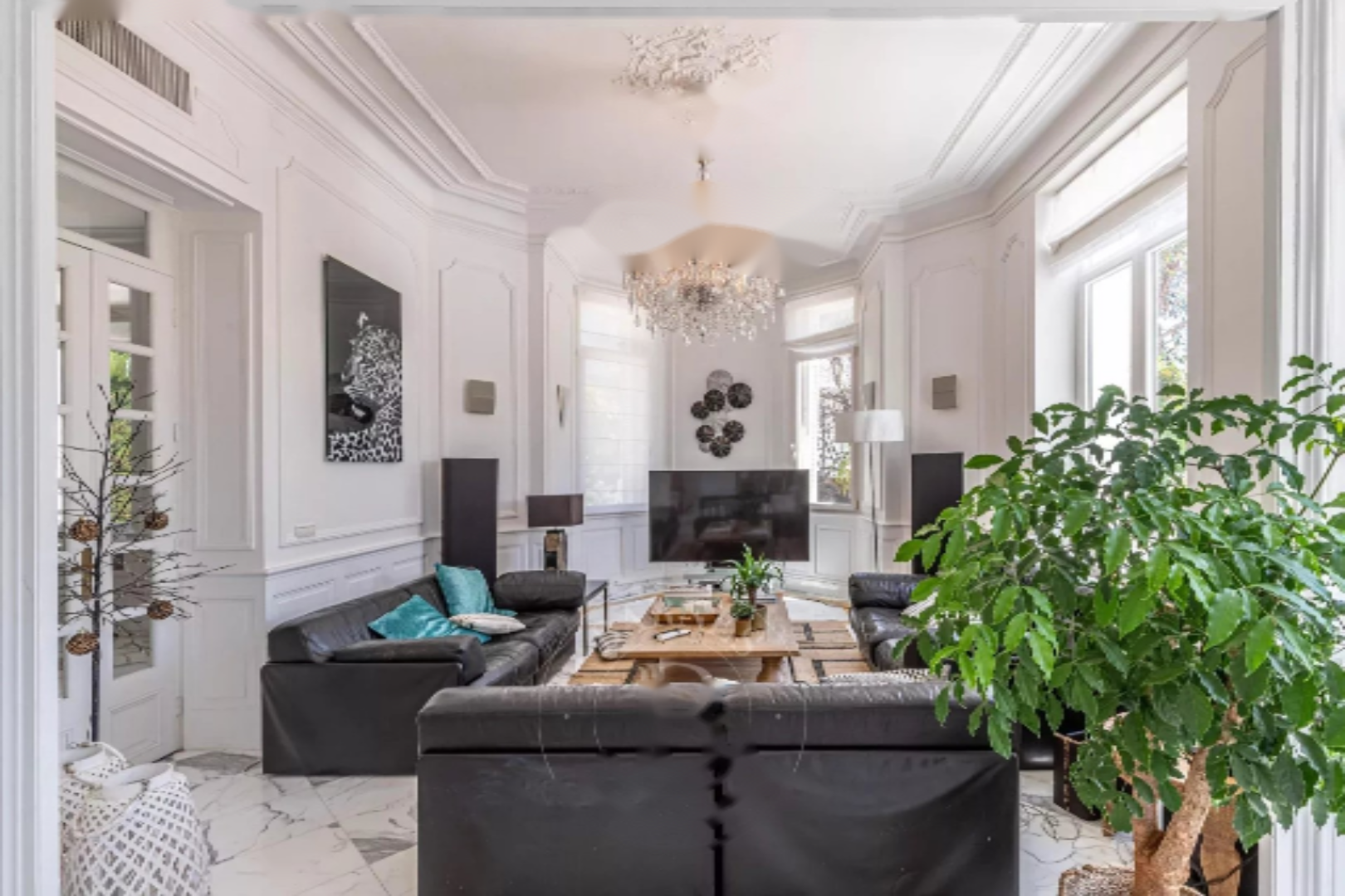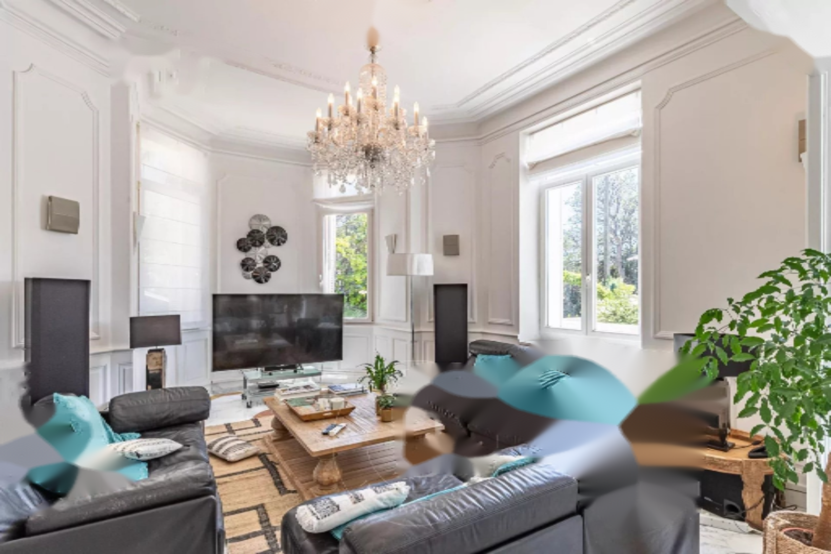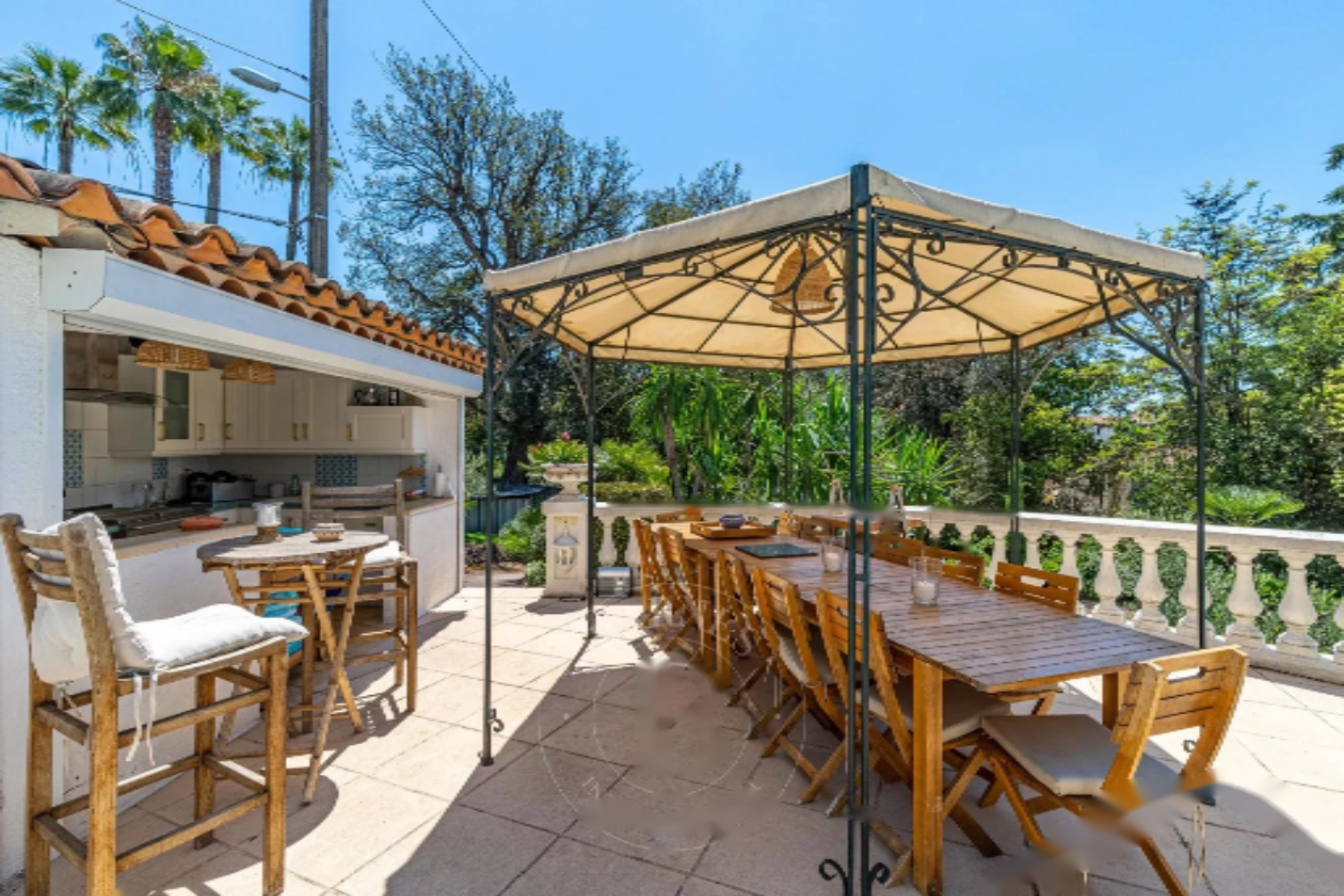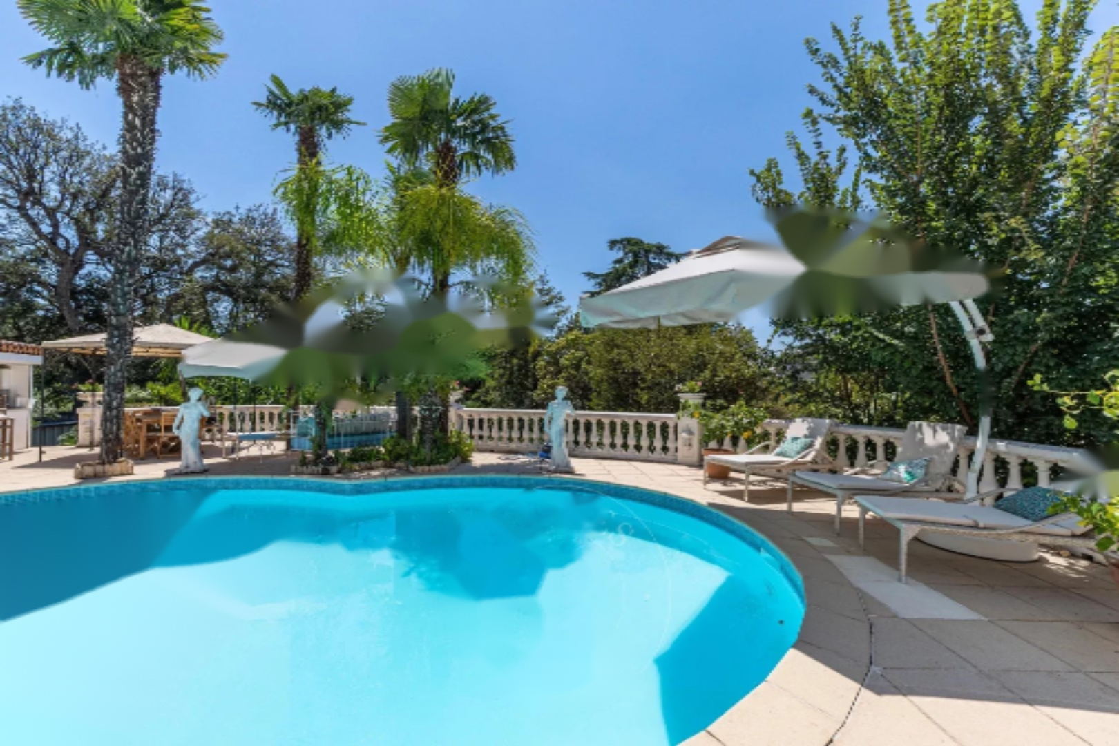 Включает в себя около 350 м² светлых приемных, 6 спален с ванными комнатами, тренажерный зал и дом для охраны. Участок площадью 1 877 м² с бассейном, павильоном у бассейна, двойными воротами и двойным гаражом. Прекрасный потенциал!