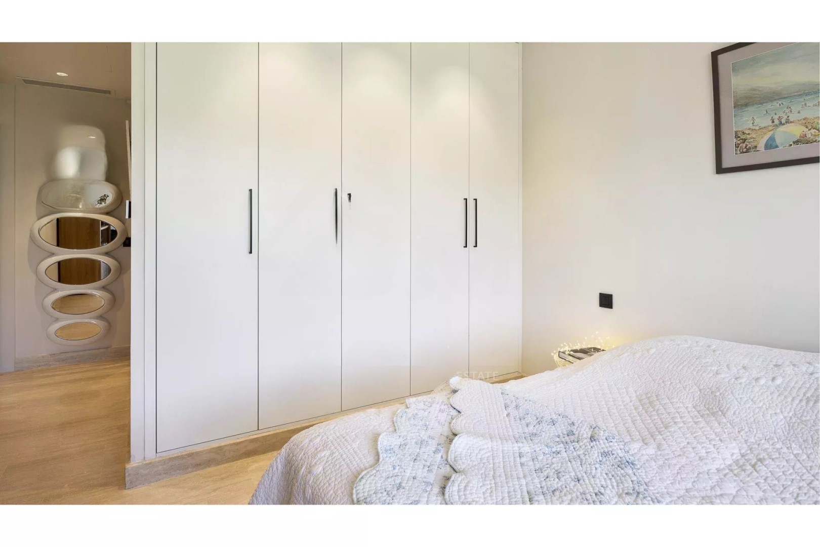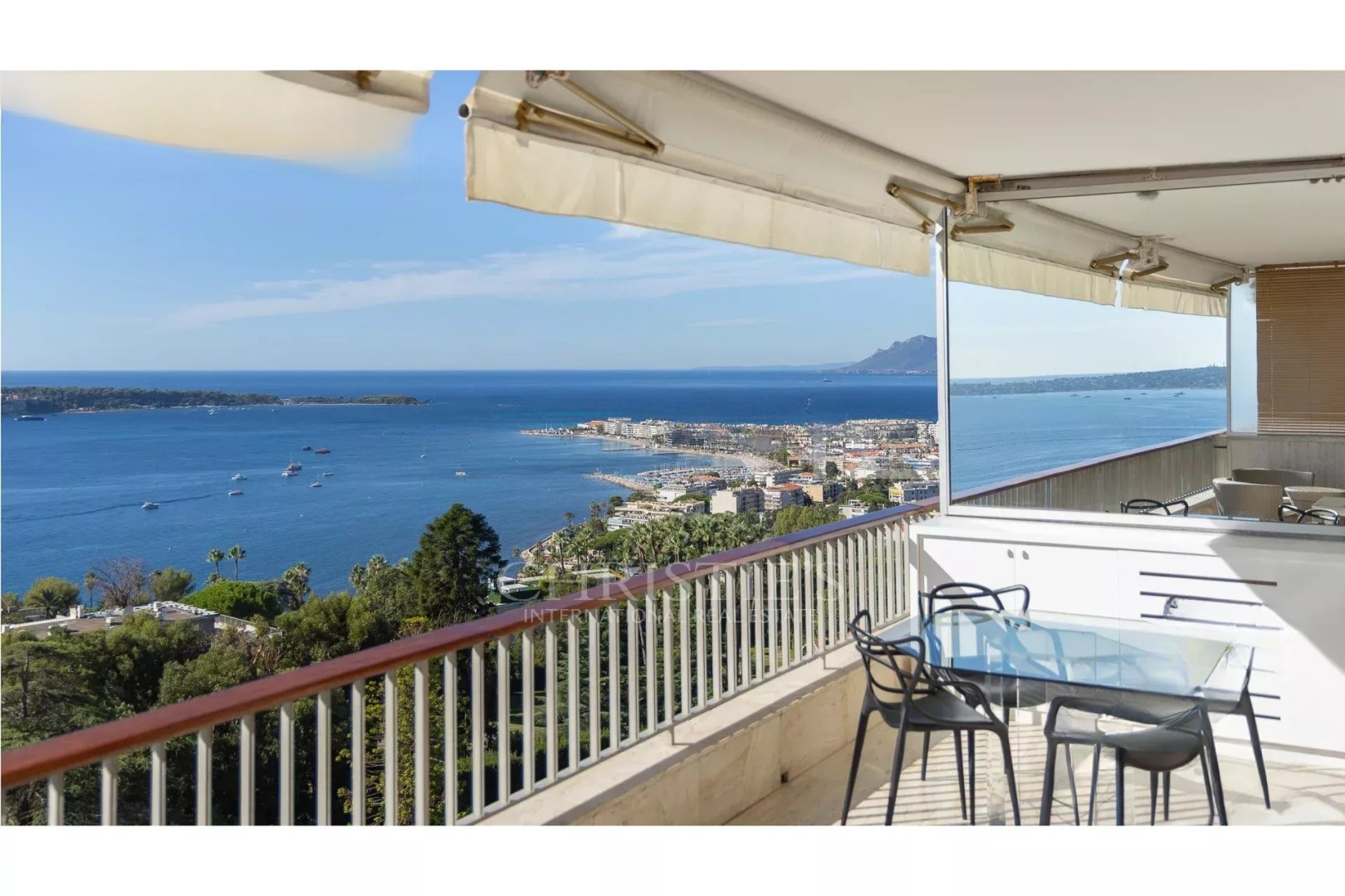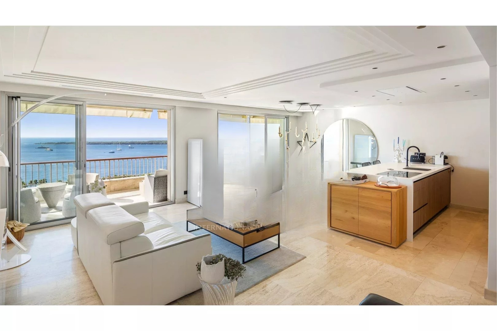 Квартира, находящаяся в отличном состоянии, выделяется просторным светлым салоном с современной полностью оборудованной открытой кухней. Великолепная терраса, ориентированная на юг, предлагает впечатляющий вид на Средиземное море и знаменитые Иль-де-Лерин, создавая идеальное место для отдыха или приема гостей.