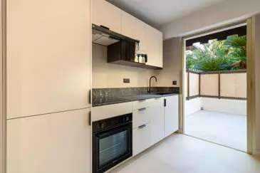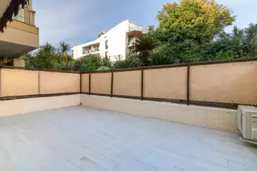 Находясь на первом этаже с садом, квартира имеет великолепную террасу площадью 24 кв. м с восточной ориентацией. Она включает в себя вход, гостиную, открывающуюся на террасу, оборудованную кухню, также открытую на гостиную и выходящую на террасу, спальню с встроенными шкафами, ванную комнату с туалетом, а также большой гардероб.