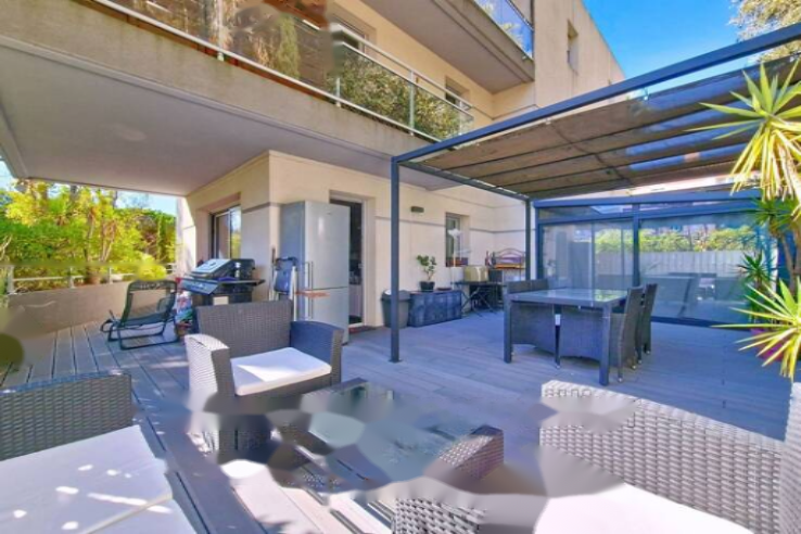 Находится на возвышенном первом этаже, скрытом от посторонних глаз, квартира прекрасно спроектирована и предлагает все удобства современной престижной резиденции. Включает прихожую, кухню в американском стиле, совмещенную с гостиной, главным спальню с собственной ванной комнатой и верандой 10м² (вне Carrez), вторую спальню на противоположной стороне, душевую с встроенным туалетом, и много мест для хранения. Основные комнаты выходят на террасу с двойной экспозицией, создавая комфортное пространство.