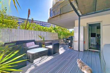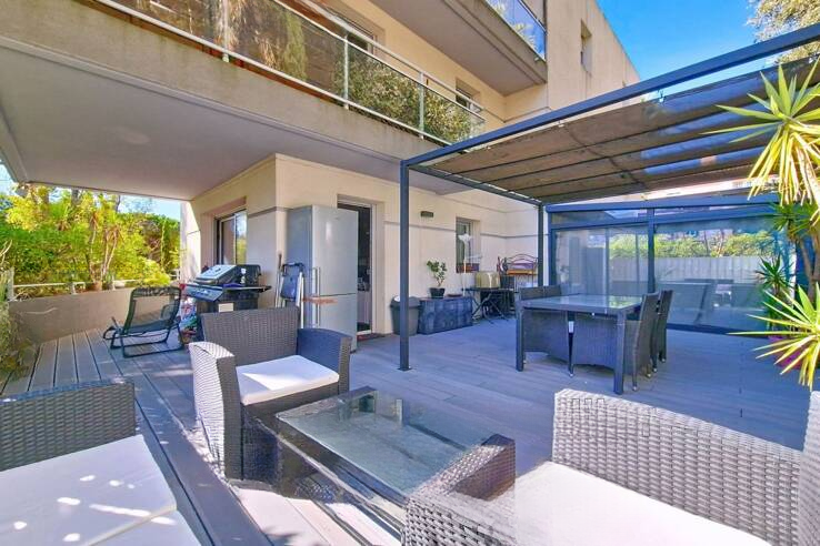 Современная квартира в Канн Лё Риу с террасой 51 м² и верандой 10 м². В небольшой резиденции 2011 года, тихой и безопасной, предлагаем красивую 3-комнатную угловую квартиру площадью 55 м², с великолепной террасой площадью 51 м², идеально подходящей для отдыха!