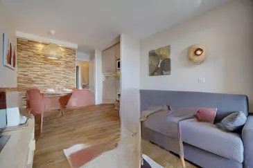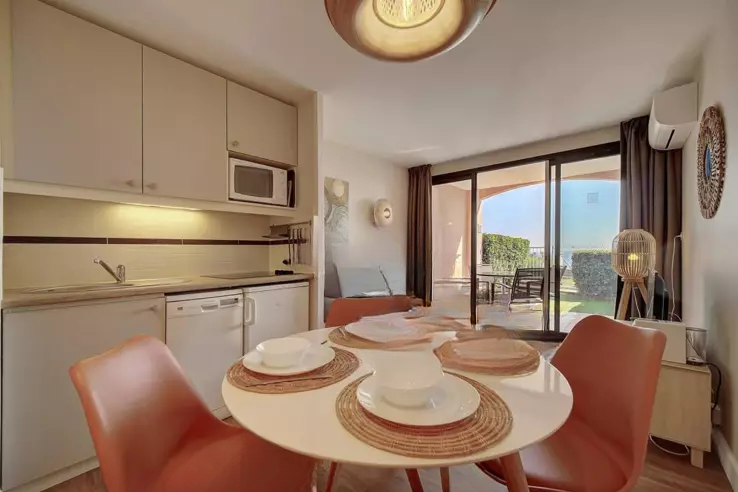 Небольшие двухкомнатные апартаменты на первом этаже подходят как для постоянного проживания, так и для вложений. Всего в 750 метрах от пляжей этот светлый апартамент с уютной гостиной, выходящей на южную сторону, имеет вид на море. ️