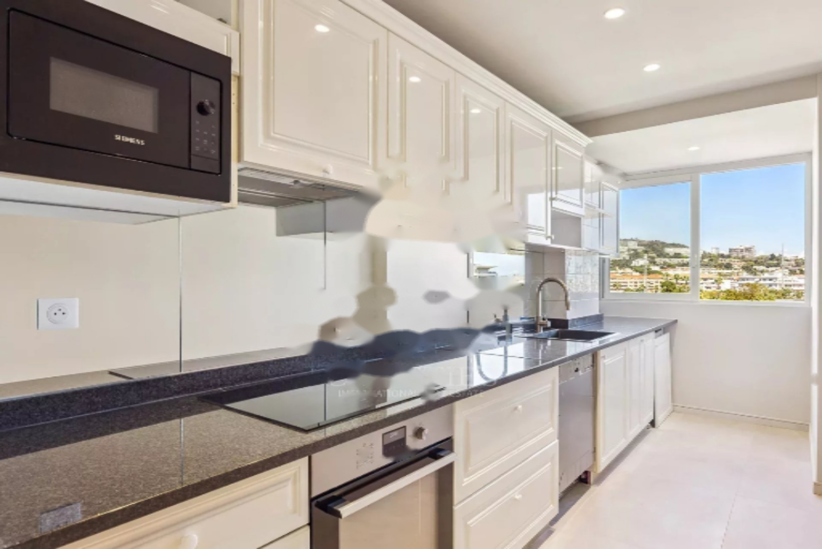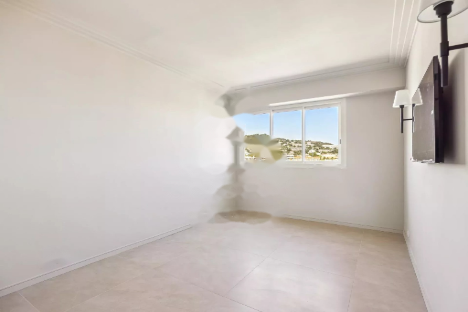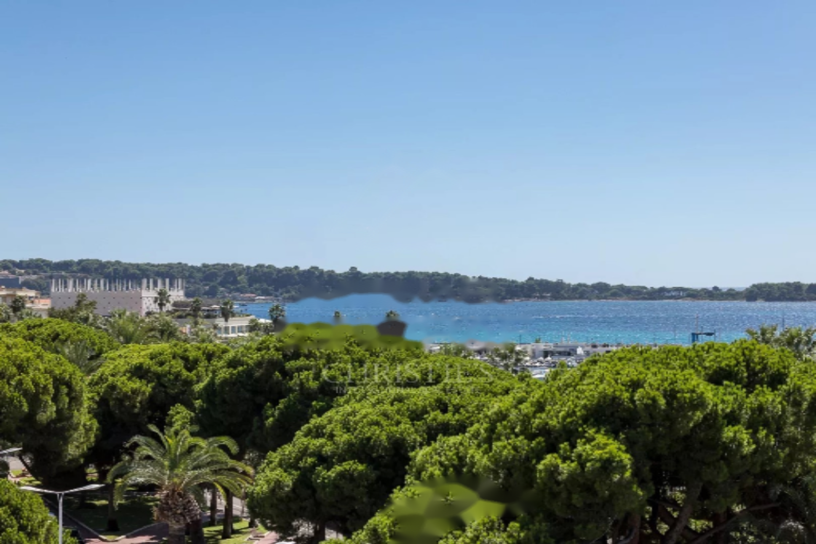 В известном здании на набережной Croisette, напротив порта Canto, располагается красивый светлый апартамент, расположенный на высоком этаже. Площадь около 95 м² позволяет насладиться панорамным видом на море. Включает в себя гостиную/столовую, выходящую на прекрасную террасу с западной экспозицией, отдельно оснащённую кухню, главную спальню с гардеробной и ванной комнатой, вторую спальню с душевой.