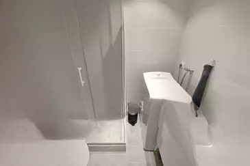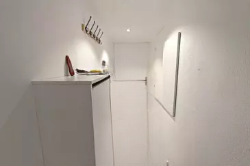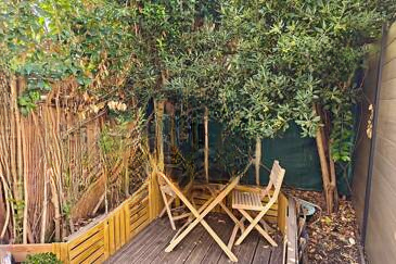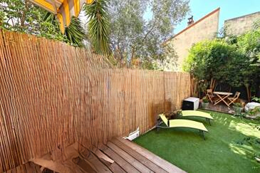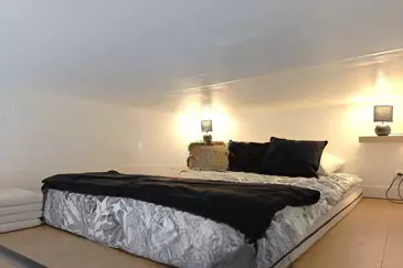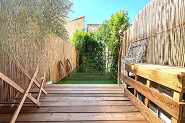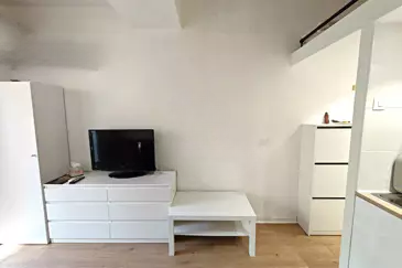 Студия включает в себя вход, душевую с туалетом и полотенцесушителем, жилую комнату с открытой кухней, спальную зону в мезонине с местами для хранения и кроватью 140 x 200, а также великолепный сад без видимости извне на западной стороне, площадью 30,25 м².