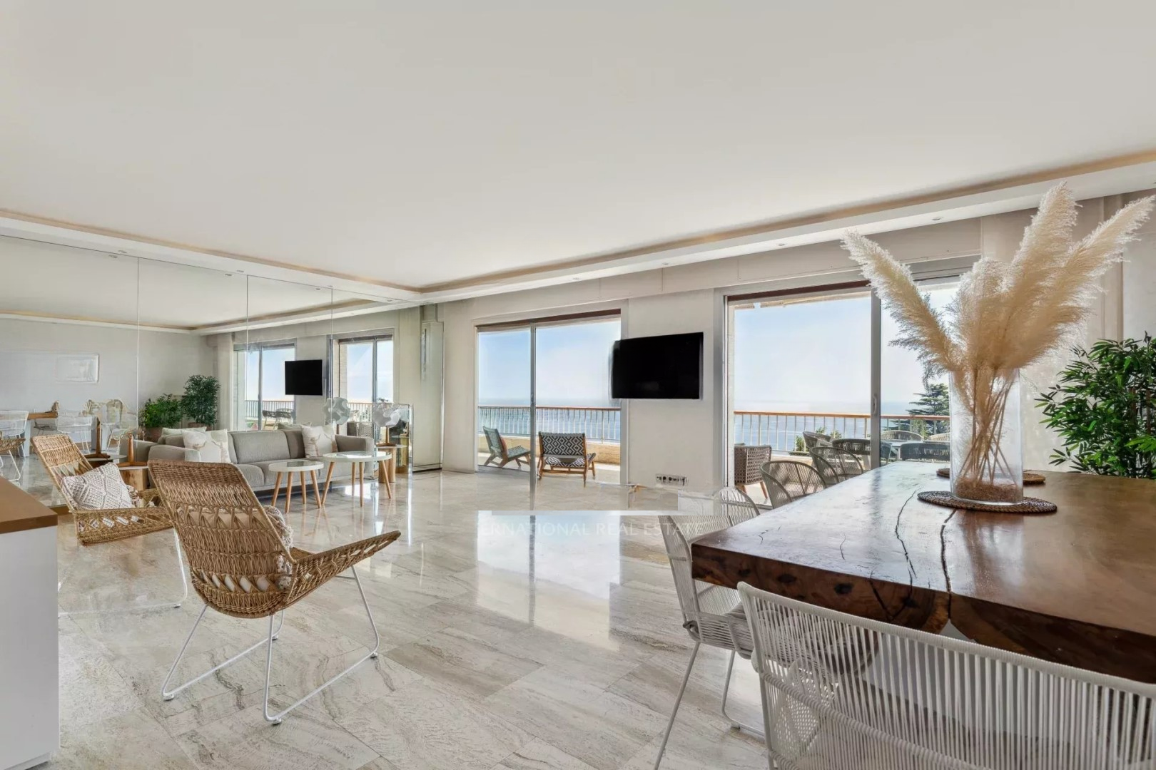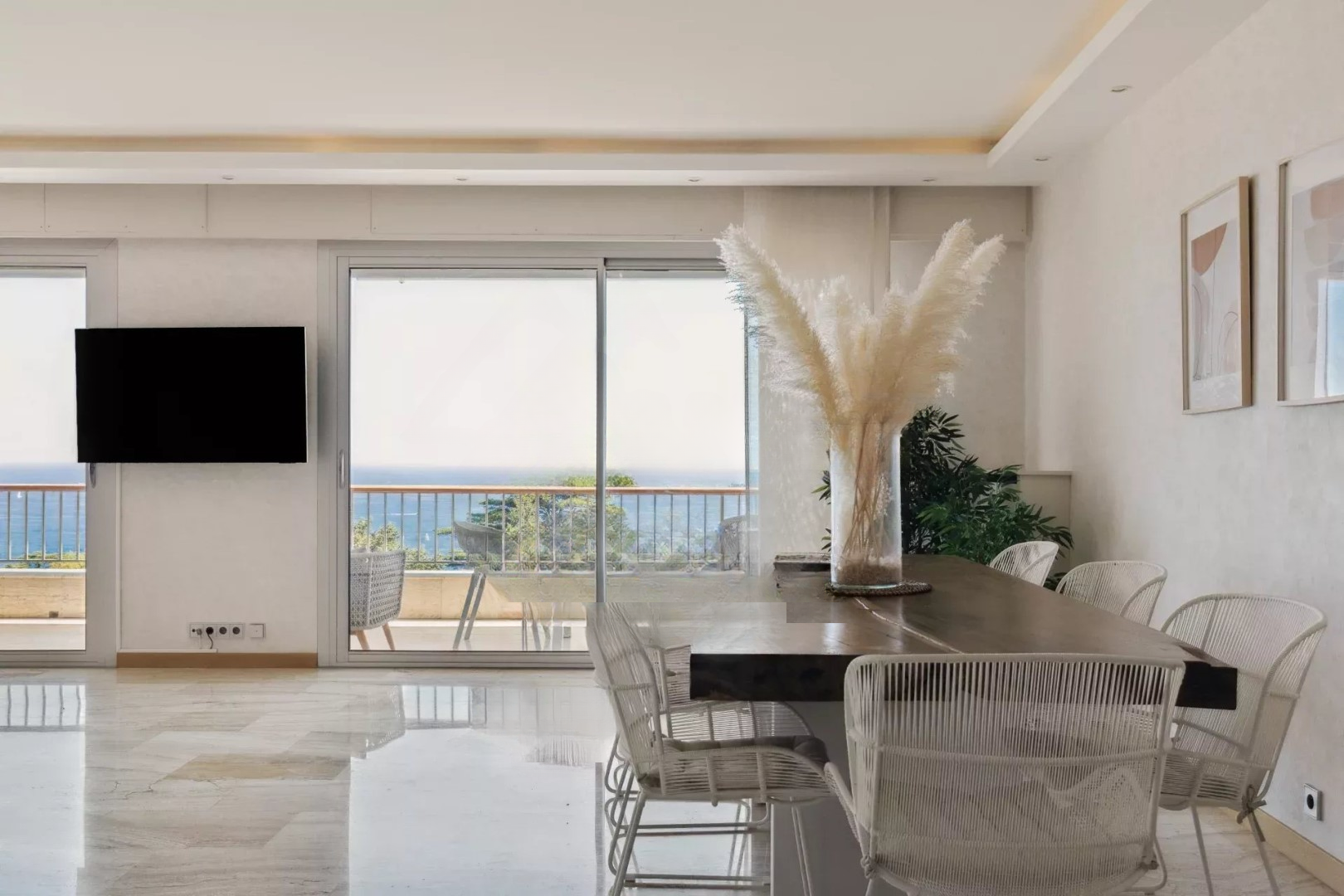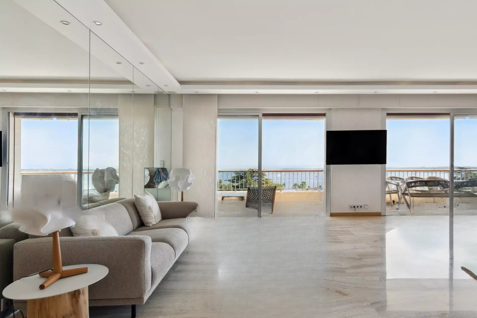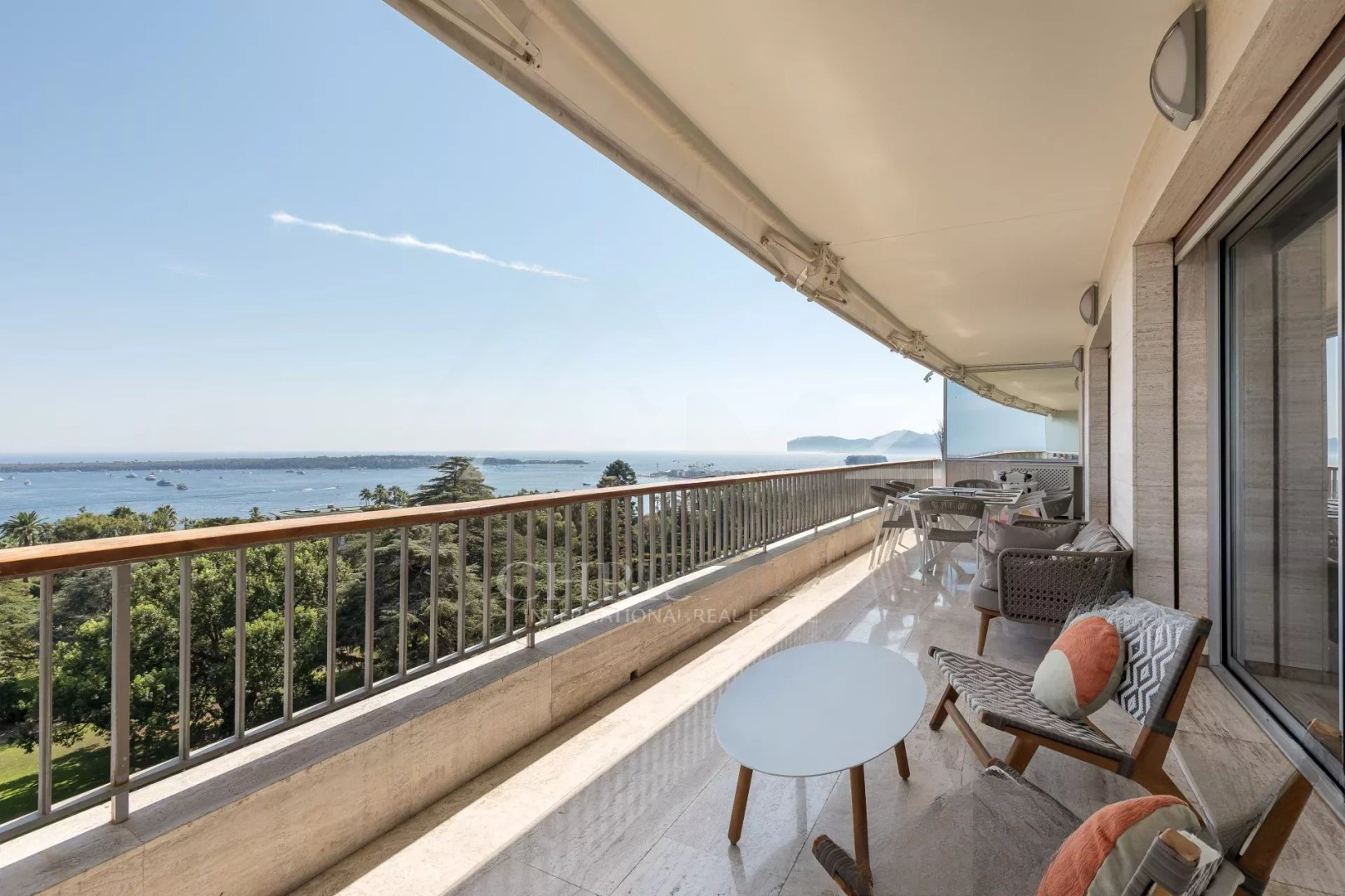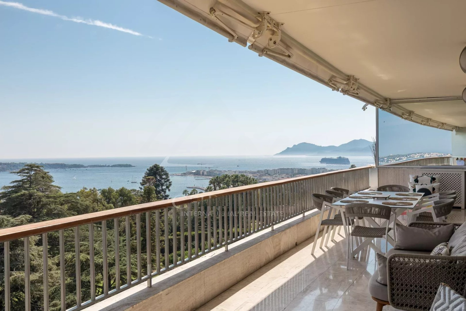 Квартира в отличном состоянии и с хорошей отделкой. Она расположена на высоком этаже и обладает панорамным видом на море, острова и Средиземное море с балкона площадью 17 м². Она также светлая благодаря двойным стеклянным дверям в гостиной.