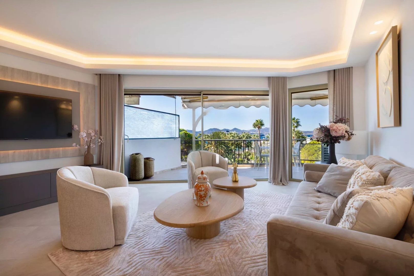 Великолепная квартира полностью отремонтирована, площадь по закону Каррез 95 м², расположена напротив порта Canto на престижном бульваре de la Croisette, в охраняемой элитной резиденции с консьержем. ✨