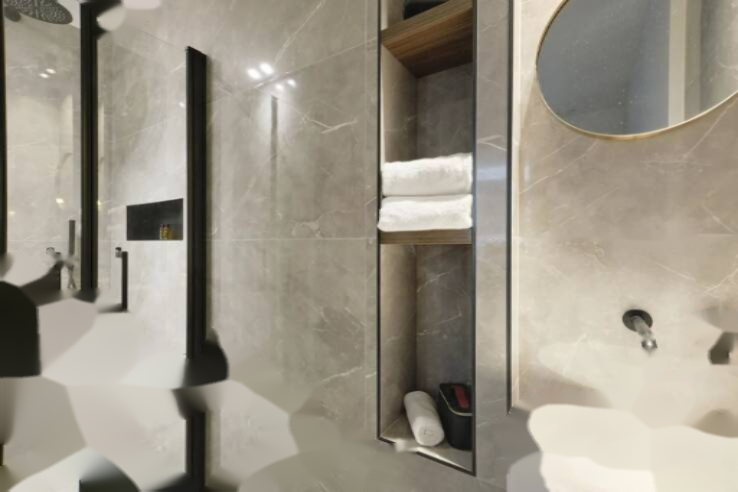 Пространства распределены следующим образом: вход, гостиная, отдельный туалет с душевой, кабинет, терраса площадью около 12 м². ️
