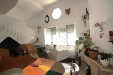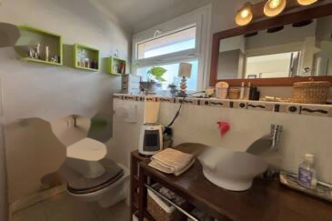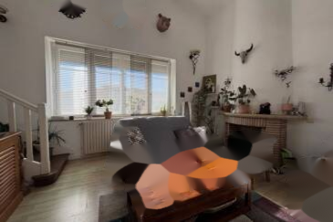 Недвижимость состоит из прихожей, светлой гостиной с мезонином и камином, оборудованной отдельной кухни, отдельного туалета, спальни с душевой, туалетом, хранилищем и чердаком, а также второй спальни с душевой, подвесным туалетом и гардеробной. Каждое помещение оснащено кондиционером.