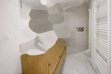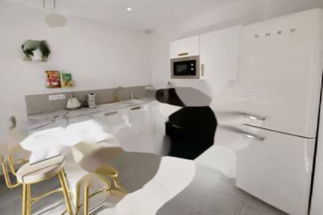 Состоит из просторной гостиной с кухней в американском стиле, 2 спальни, душевой комнаты и отдельного туалета, а также множества шкафов.
