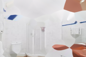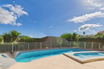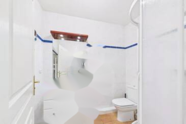 Спальная зона включает две спальни, одна из которых — с ванной комнатой, туалетом и встроенными шкафами. Вторая ванная комната с туалетом, отдельный туалет и кладовая завершают это функциональное и хорошо организованное жилье.