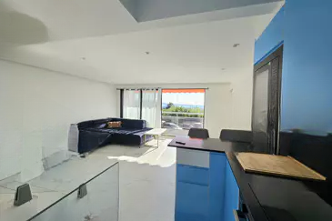 На границе с MANDELIEU, прекрасная светлая квартира с тремя комнатами, полностью отремонтированная, расположена в охраняемой резиденции с консьержем. В состав квартиры входит: вход с платяным шкафом, гостиная с оборудованной американской кухней, выходящей на красивую террасу с видом на море, спальня с зоной для гардероба и спальня с большим шкафом, душевая комната с туалетом.