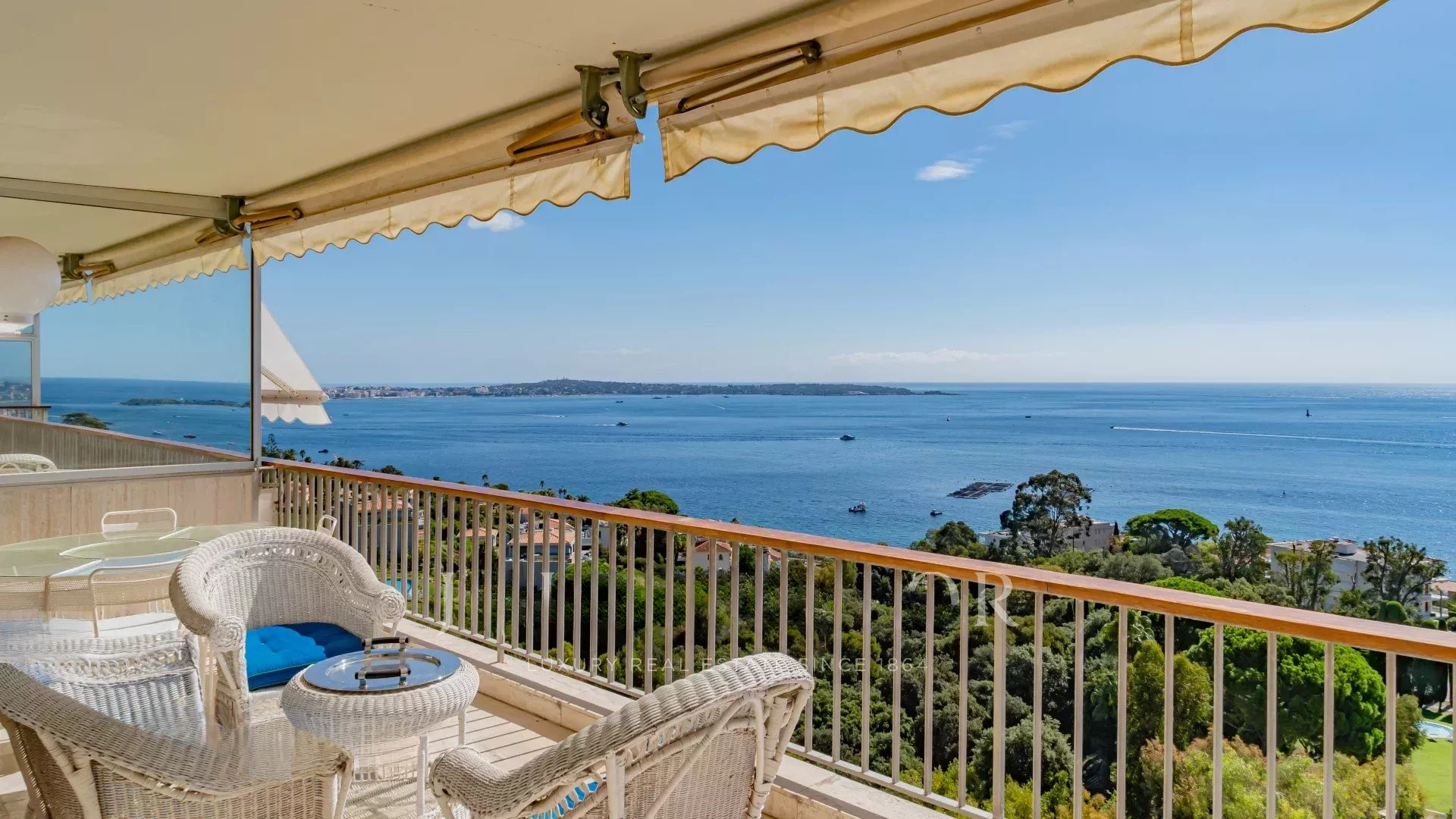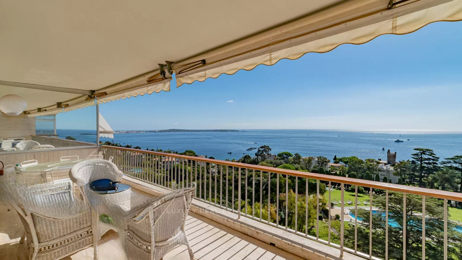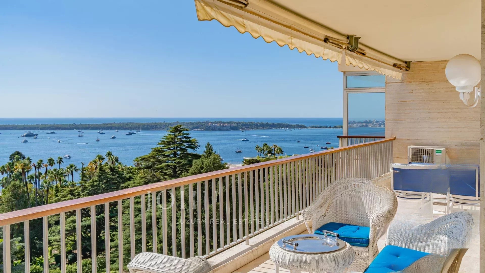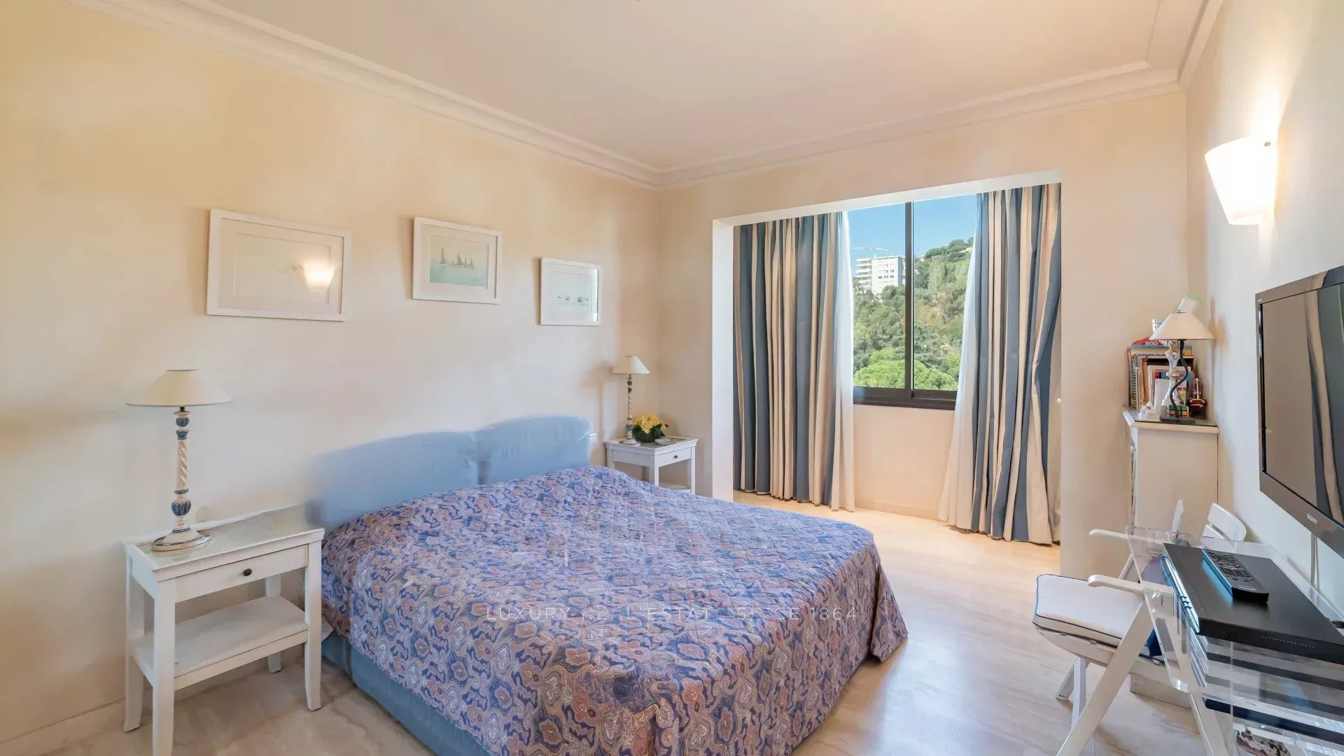 В жилом комплексе высокого уровня с круглосуточной охраной, находящемся в парке площадью 12 га с бассейном, теннисными кортами, тренажерным залом, полем для гольфа и услугой трансфера, эта прекрасная квартира на высоком этаже предлагает исключительную панораму от мыса Антиб до островов Лерин и моря. ️
