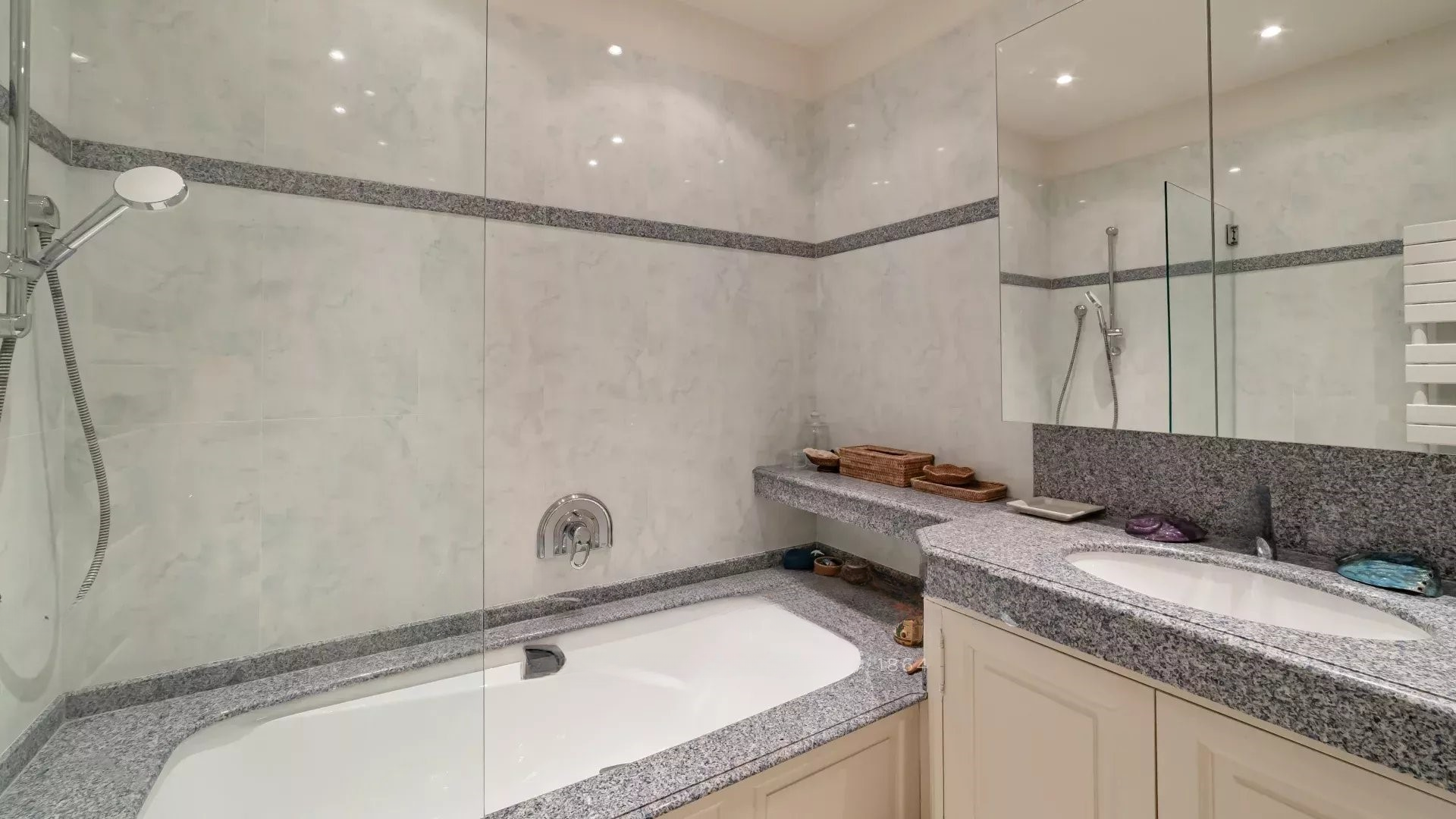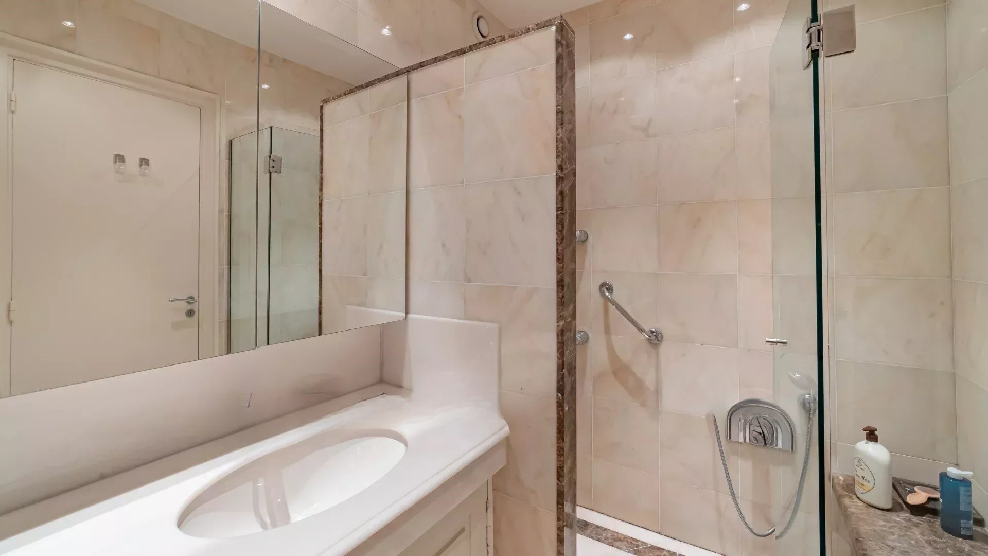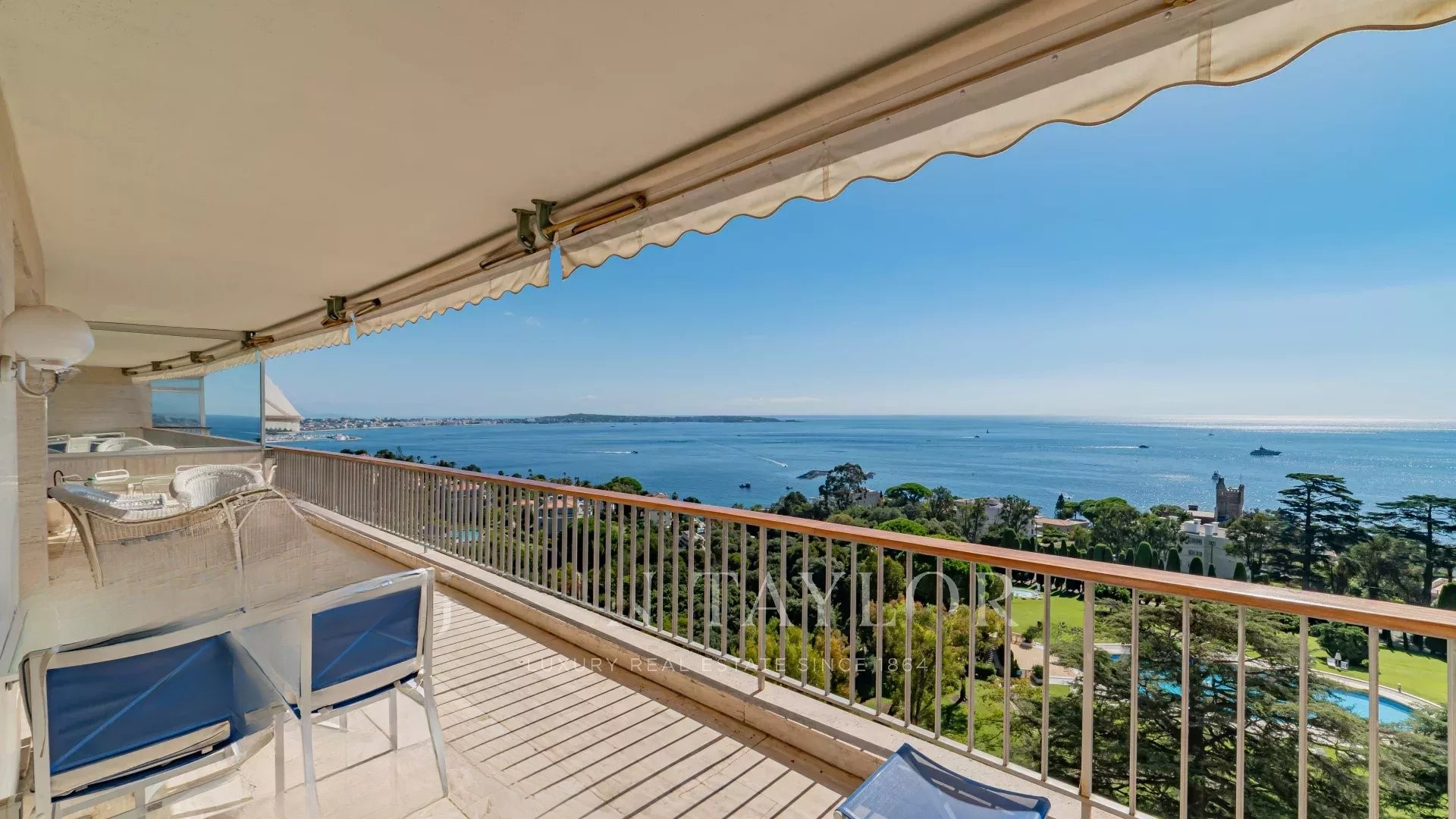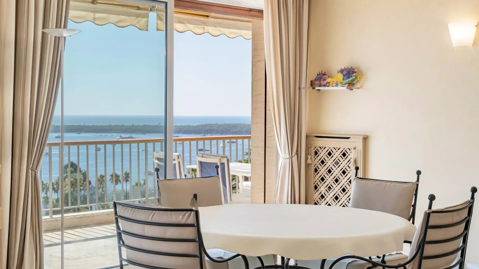 В жилом комплексе высокого уровня с круглосуточной охраной, находящемся в парке площадью 12 га с бассейном, теннисными кортами, тренажерным залом, полем для гольфа и услугой трансфера, эта прекрасная квартира на высоком этаже предлагает исключительную панораму от мыса Антиб до островов Лерин и моря. ️