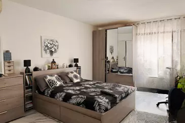 Тихо и рядом с центром, лифт и кондиционер, в хорошем состоянии, готова к заселению без ремонта. Потенциал для использования через Airbnb или для сдачи в аренду. Есть возможность арендовать парковочное место (85 евро в месяц).