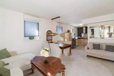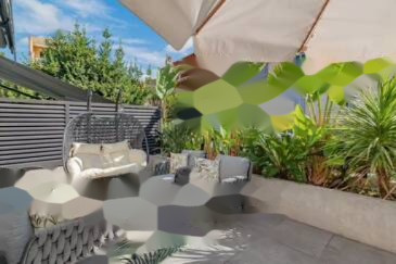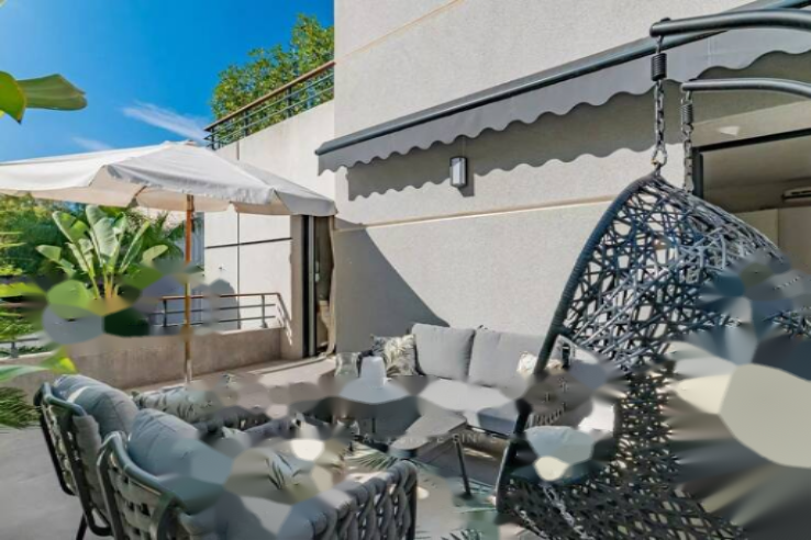 Большая солнечная терраса площадью 26 м², окруженная зеленью, предлагает приятное открытое пространство.