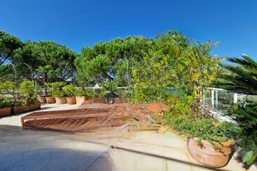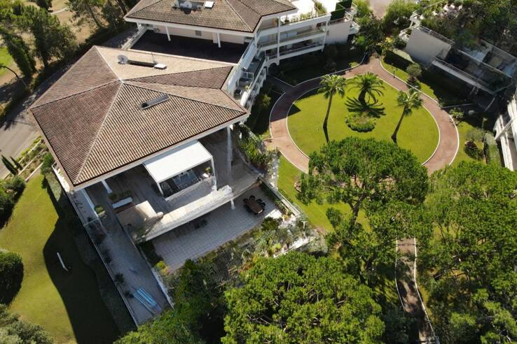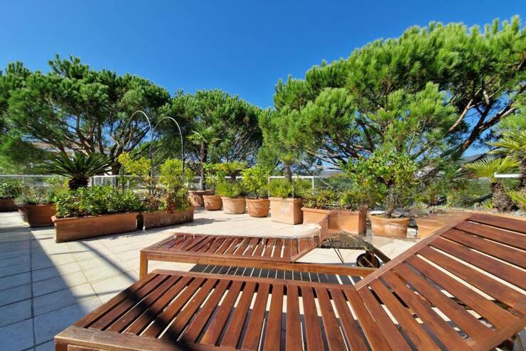 Исключительная терраса площадью 200 м², окружённая зеленью, предлагает захватывающий вид на прекрасный сад — настоящий оазис спокойствия.