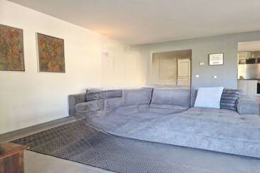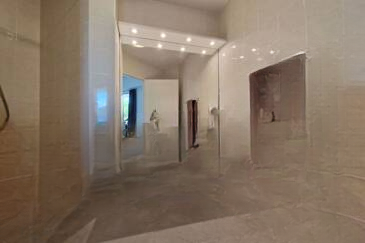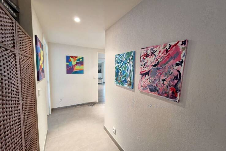 ❄️ Квартира полностью кондиционирована (системы встраиваемой вентиляции) и содержит элегантный вход, ведущий в светлую гостиную площадью 50 м² с полностью оборудованной открытой кухней.