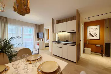 Расположенная в сердце престижного района Palm Beach, эта 2-комнатная квартира площадью 32 м² была заботливо преобразована из студии архитектором, предлагая современное жильё в двух шагах от моря. Пространства оптимизированы с умом, а материалы выбраны за их элегантность и долговечность.