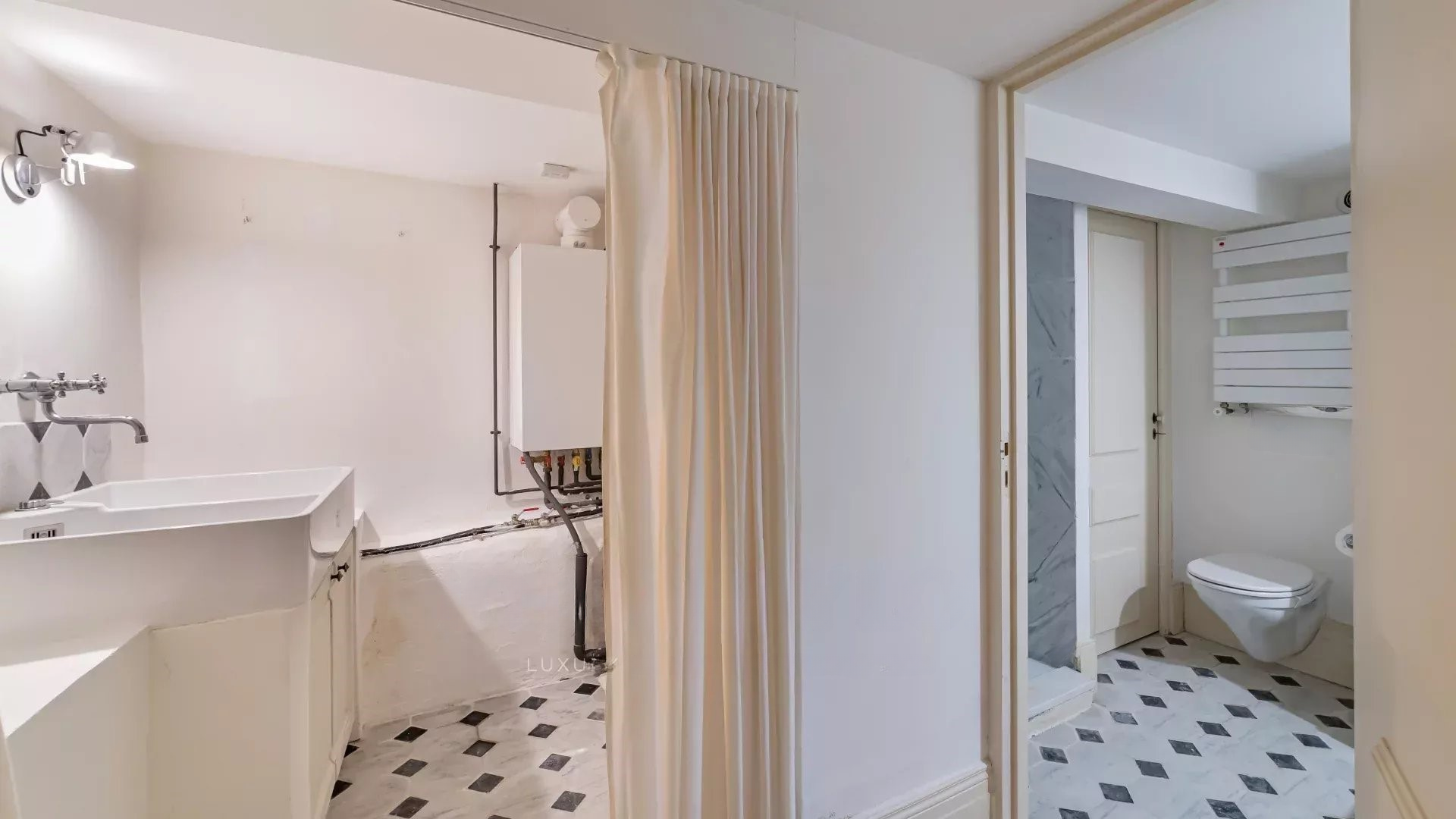 South exposure, 5 rooms, living room, 3 toilets, 2 shower rooms, entrance, unfurnished, 1 bathroom, 3 bedrooms, gas heating.