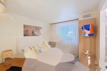 На нижнем этаже: две спальни, каждая с собственной ванной комнатой; одна из спален имеет прямой выход на террасу.