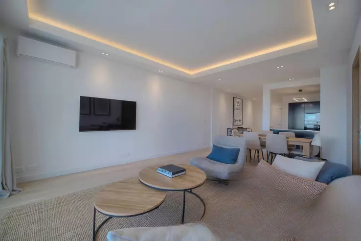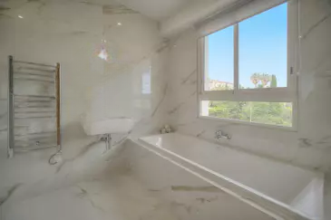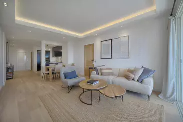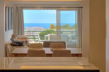 В тихом и охраняемом резиденциальном комплексе в районе Basse Californie, этот красивый 4-комнатный объект полностью обновлен с высокой степенью качества исполнения. Он включает в себя прихожую, полуразделённую полностью оборудованную кухню, гостиную и столовую, выходящие на угловую террасу, ориентированную на юг с видом на море, 3 спальни и 2 ванных комнаты.