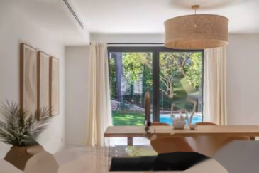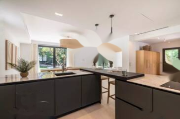 - на первом этаже: более 80 м² открытого пространства с гостиной, столовой и полностью оборудованной кухней, прачечная и гостевой туалет.