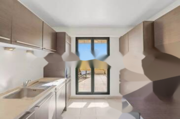 Двухуровневая квартира 5 комнат на последнем этаже. Она предлагает жилую площадь 120 кв. м и включает в себя прихожую, ведущую в прекрасную светлую гостиную с отдельной, обустроенной и оборудованной кухней, всё это выходит на красивую террасу площадью 15 кв. м.