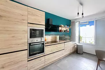 Находится в зелёной зоне, в непосредственной близости от всех удобств, этот светлый двухкомнатный апартамент площадью 54 м² расположен на 2-м этаже хорошо ухоженной резиденции. Полностью отремонтирован два года назад, он включает просторную гостиную с открытой кухней площадью 32 м², выходящую на террасу, ориентированную на запад, с панорамным видом. Спальня 13 м² с встроенным гардеробом.