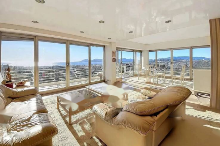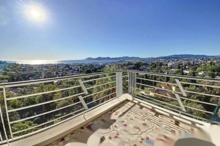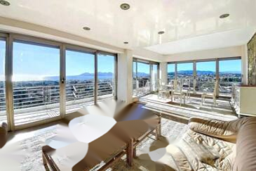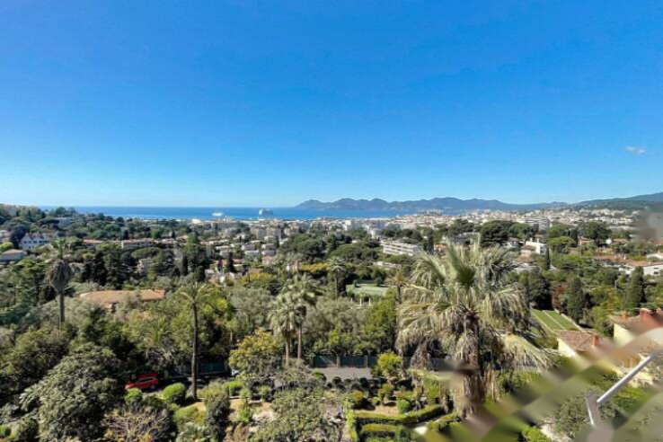 У подножия Калифорнии, в престижной резиденции с парком и консьержем, на высоком этаже находится просторная квартира 3/4 P площадью 135 м² по закону Carrez (144 м² общая) с великолепным панорамным видом на море и террасой более 50 м².