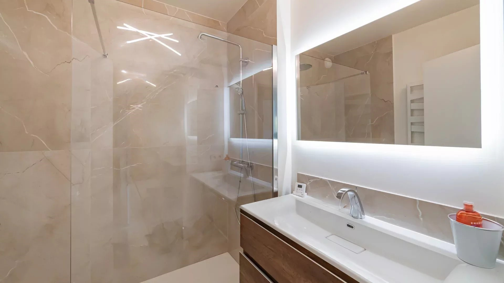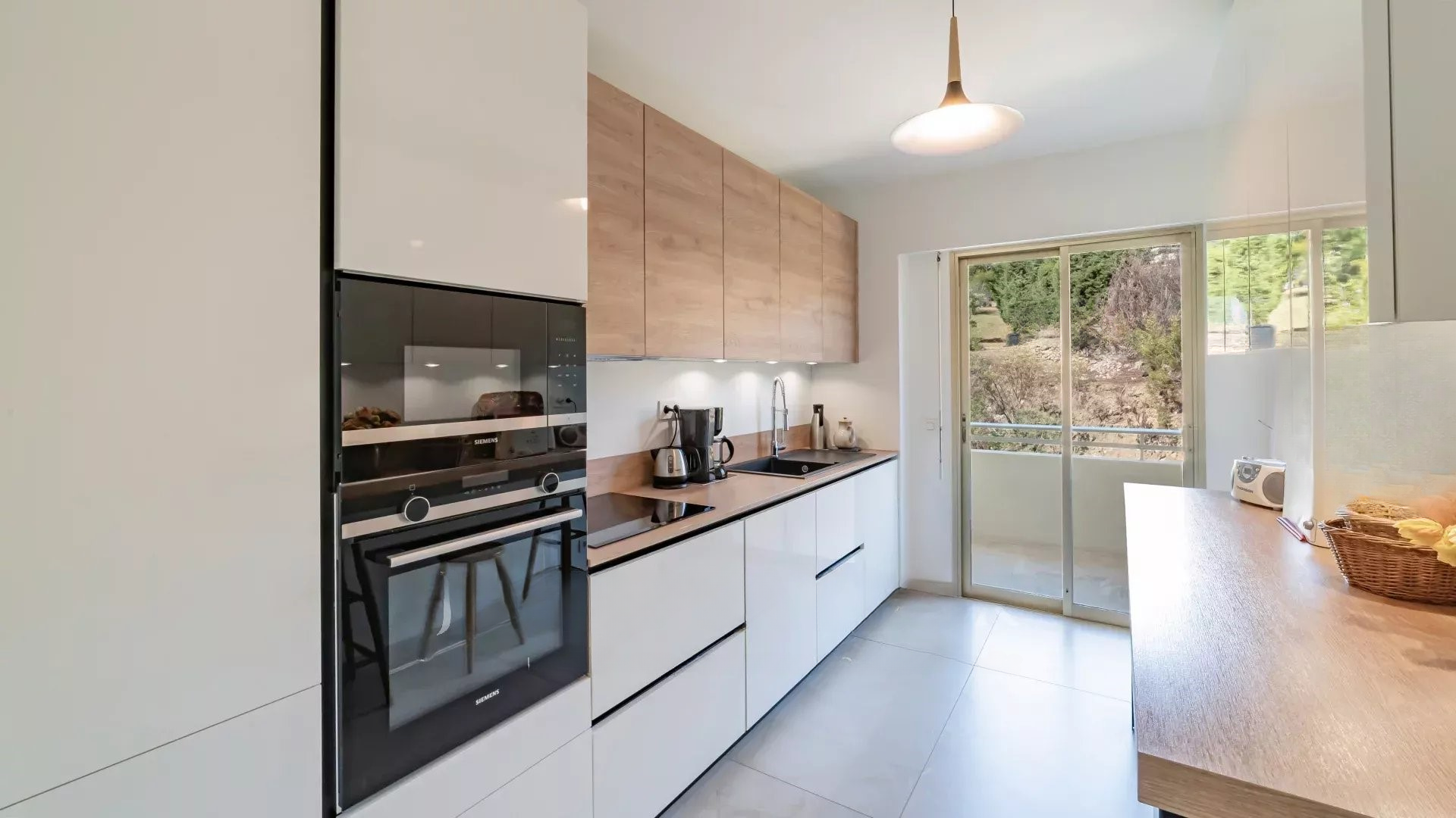 Эта квартира, проходящаяся через здание, имеет две террасы: одну площадью 14 м² со стороны гостиной и другую площадью 11 м² со стороны спален. Две парковочные места в подземном паркинге, а также погреб дополняют это уникальное предложение.