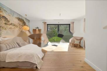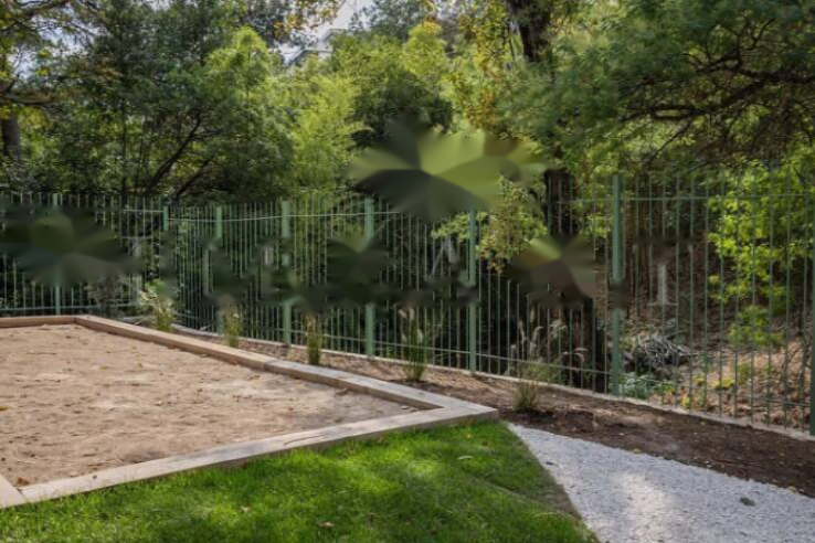 Ландшафтный сад включает бассейн 8x4, площадку для игры в петанк — настоящий оазис спокойствия, окружённый зеленью, дополненный парковочным пространством на 2-3 машины.