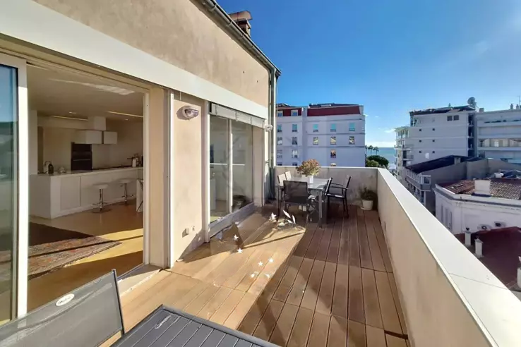 Основная квартира, великолепный дуплекс, порадует вас своим частным террасой площадью 18 м² с боковым видом на море. Она включает просторную светлую гостиную, полностью оборудованную открытую кухню с подсобным помещением и гостевой туалет. На этаже: две красивые спальни с душевыми, родительская спальня с джакузи, встроенным гардеробом и душевой, плюс возможность третьей спальни. Два смежных студио на том же этаже идеально дополняют комплекс, предлагая удивительную гибкость использования для офиса, семейного жилья или инвестиционного арендного жилья. Эта уникальная конфигурация позволяет объединить или сохранить все три объекта разделёнными в зависимости от ваших потребностей. Идеально подходит для основной резиденции, инвестиционного арендного жилья или как точка доступа в одном из самых востребованных районов Канн.