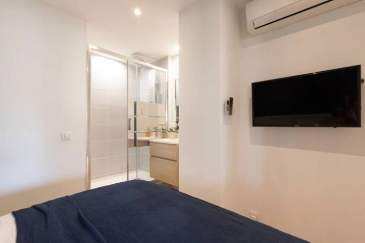 Квартира включает просторную гостиную, наполненную светом, с выходом на просторную террасу, идеальную для наслаждения мягким климатом Лазурного берега. Кухня, современная и элегантная, гармонично вписывается в жилую зону.