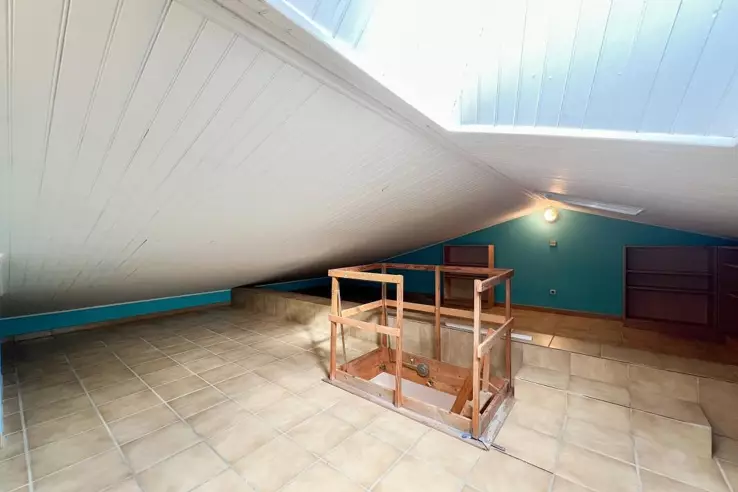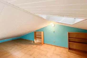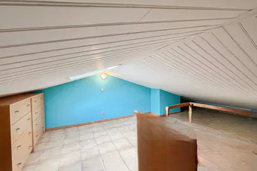 В мансарде: пространство в 58 м², уже обустроенное и идеально подходящее для оптимизированного хранения или уютной гостевой спальни.