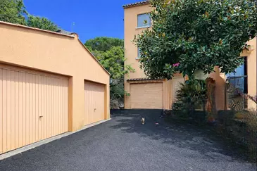 Снаружи: два закрытых гаража более 16 м² каждый дополняют этот редкий объект недвижимости.