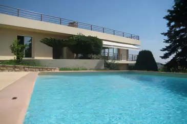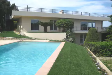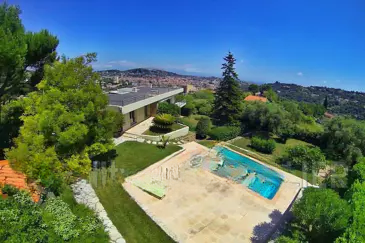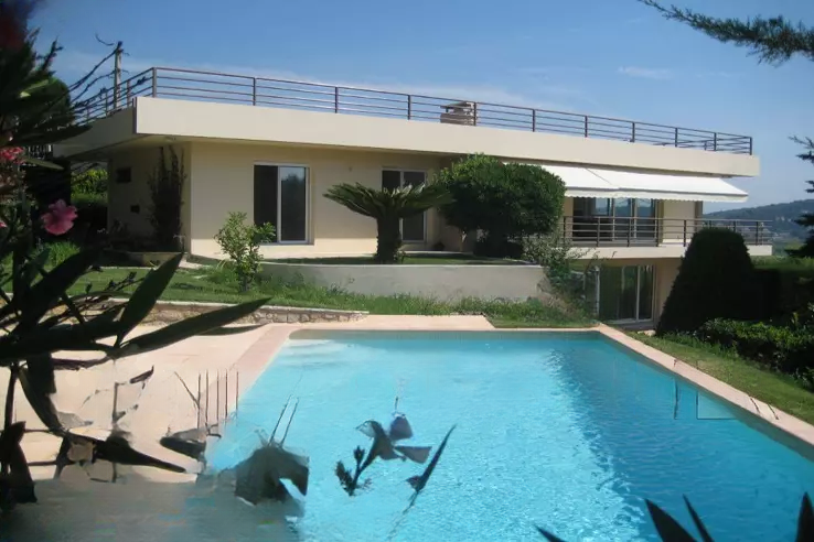 Расположенная в районе Super Cannes Vallauris Collines, эта современная вилла стоит на возвышении и ориентирована на юг, предлагая потрясающий вид на море и панорамную террасу.