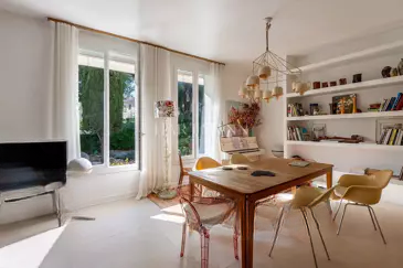 Средиземноморский сад площадью 380 м², полностью ориентированный на юг, предлагает настоящее убежище спокойствия: уединённый бассейн, тенистые террасы и зоны отдыха, позволяющие продлить солнечные дни. Модерные удобства включают оборотный кондиционер, двойные стеклопакеты, кладовую площадью 11 м² и приватную парковку.