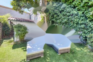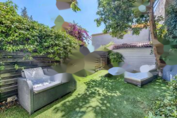 Собственный сад, частично выложенный плиткой, может вместить большой стол для восьми человек. Остальную площадь можно обустроить под газон, садовую мебель или зону отдыха с шезлонгами. Хозблок 9 кв. м предоставляет отличные возможности для хранения. Вся атмосфера пропитана средиземноморским духом с такими растениями, как жасмин, мимоза, авокадо и виноградная лоза.