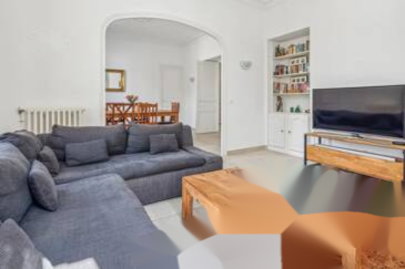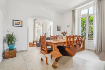 Оснащён кондиционером, квартира предлагает просторные помещения и высокие потолки с розетками и карнизами, широкие окна и балконы. Единственный на площадке, он расположен на первом этаже очаровательного городского дома. Подвал предоставляет дополнительное хранилище.