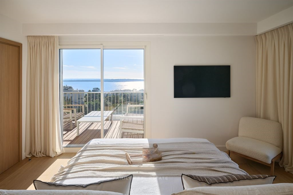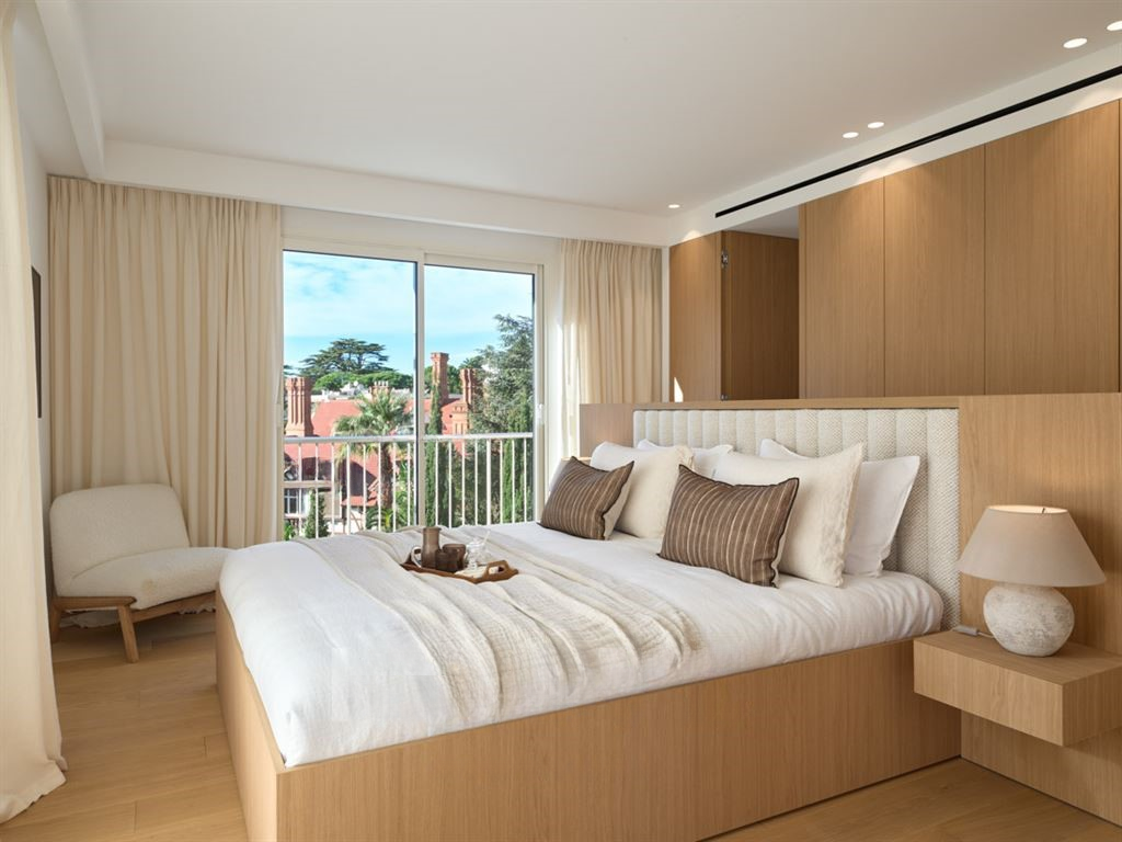 Канны — Калифорния. Прекрасный проходной апартамент площадью 155 м², с четырьмя комнатами, расположен на 4-м этаже резиденции высокого уровня с бассейном и консьержем.