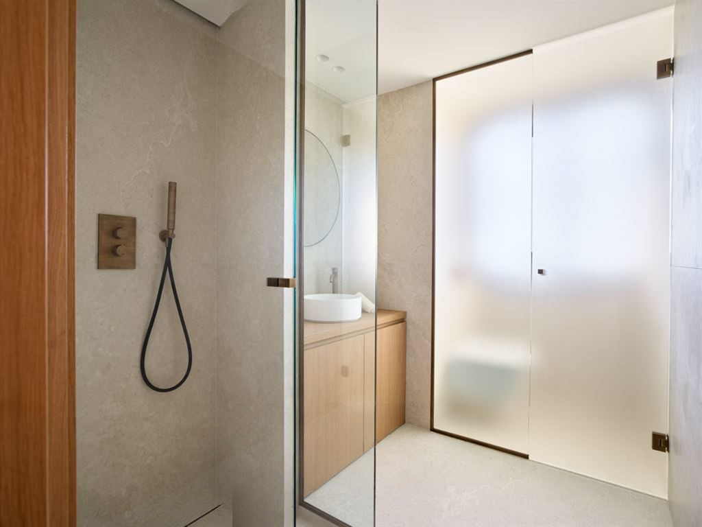 Большая светлая гостиная площадью 60 м². Три спальни, три ванные комнаты, прачечная. Терраса площадью 20 м² с панорамным видом на море. Также имеются две другие террасы: 17 м² и 4,5 м².