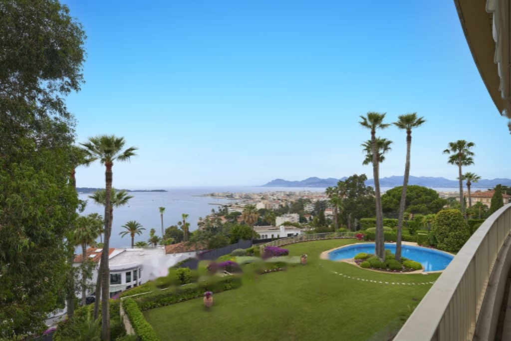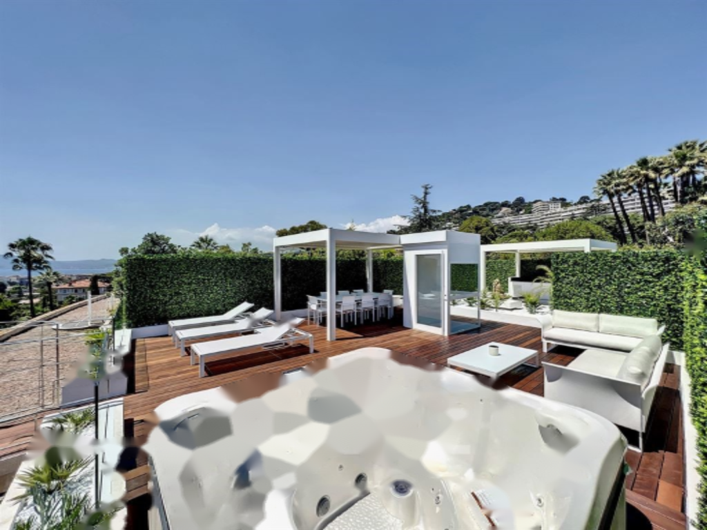 Канны - Калифорния. Апартаменты площадью 143 м² с четырьмя комнатами, расположенные на 6-м и последнем этаже престижной резиденции с консьержем, бассейном и видом на море и сад.