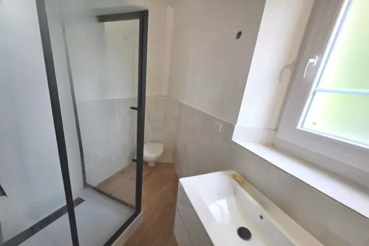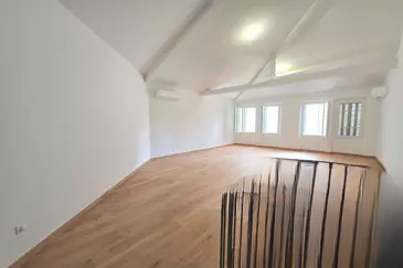 Второй апартамент площадью около 100 м² на 2 уровнях, для обустройства по вашим потребностям. Возможность 3 спален, имеется уже туалет и умывальник внизу, наверху душевая.