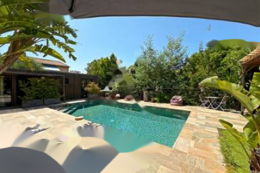 Биоклиматическая терраса, ориентированная на юг, выходит на озелененный сад, бассейн, площадку для петанка и зоны отдыха. Все продумано для наслаждения климатом и спокойствием места.