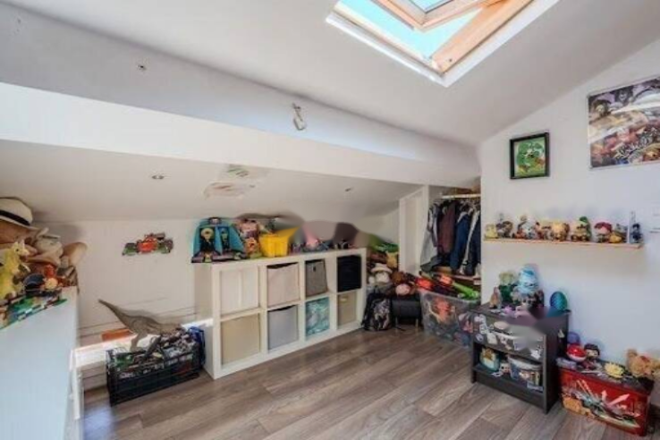 На верхнем этаже расположены две спальни с ванной комнатой и туалетом, а также главная спальня с душевой комнатой и туалетом. На первом этаже имеется небольшое кладовое помещение около 3 м², реверсивный кондиционер и двойное остекление. Возможна аренда закрытого гаража поблизости.
